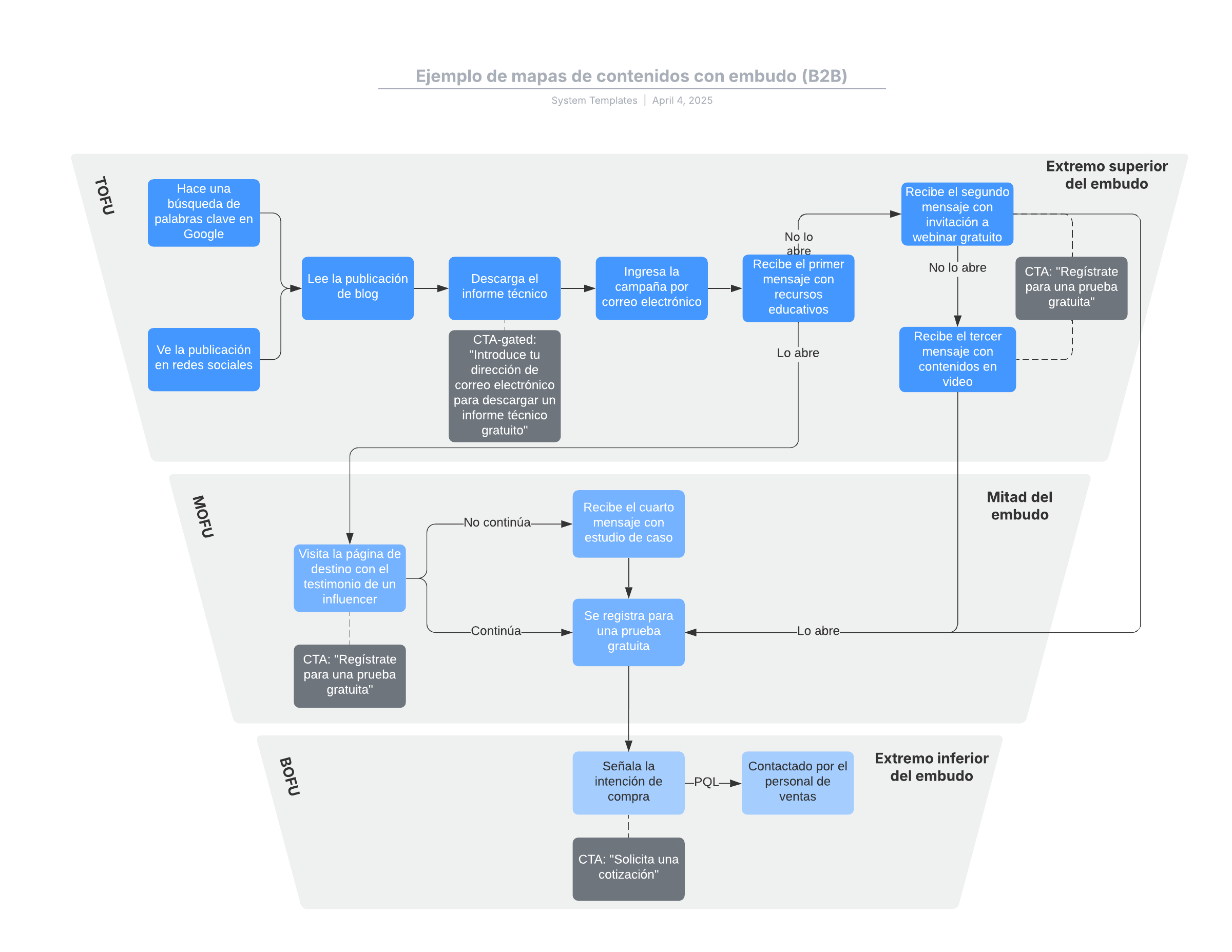 Ejemplo de mapas de contenidos con embudo (B2B)