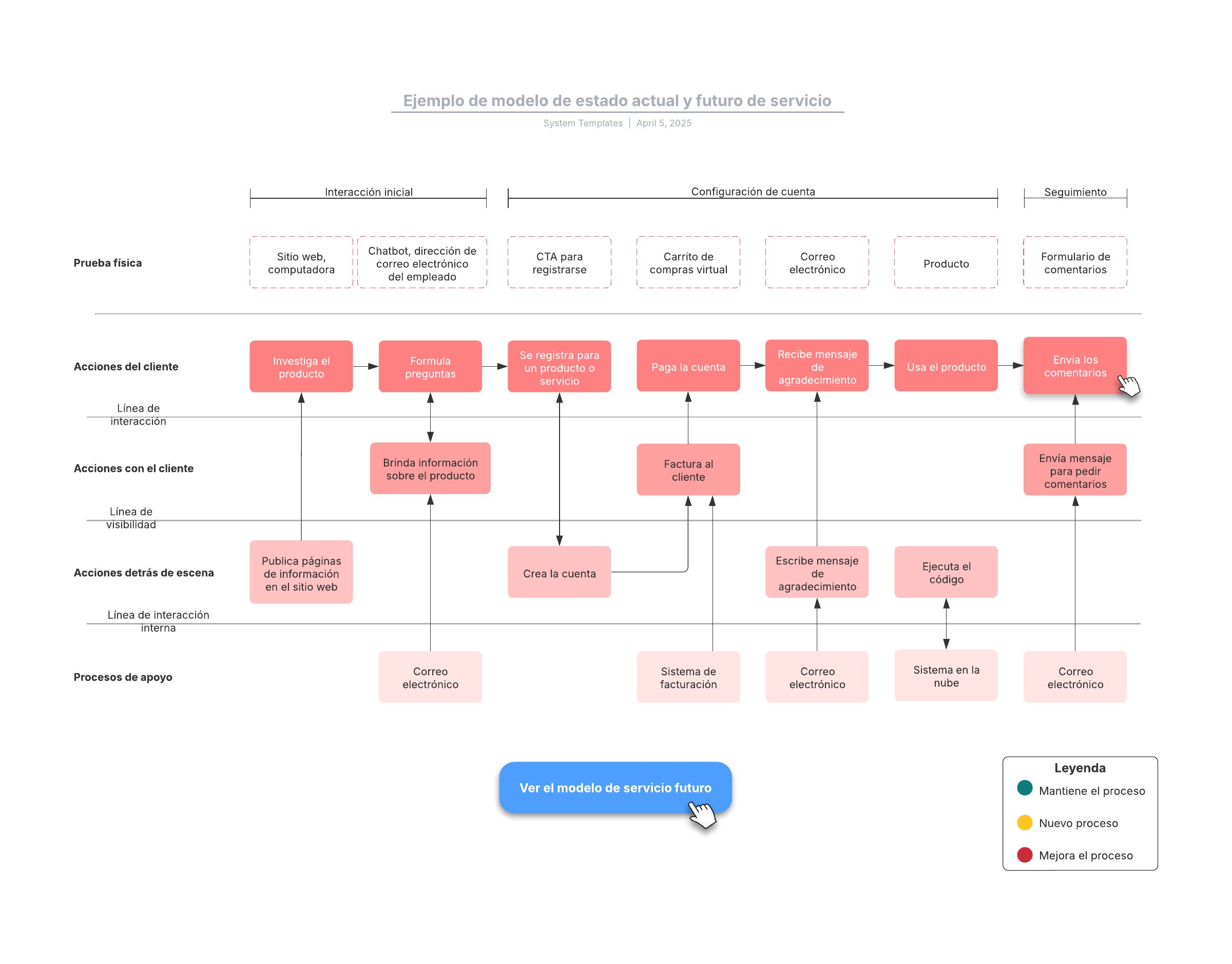 Abre esta plantilla para ver un ejemplo detallado de un modelo de estado de servicio actual y futuro que puedes personalizar según tu caso de uso.