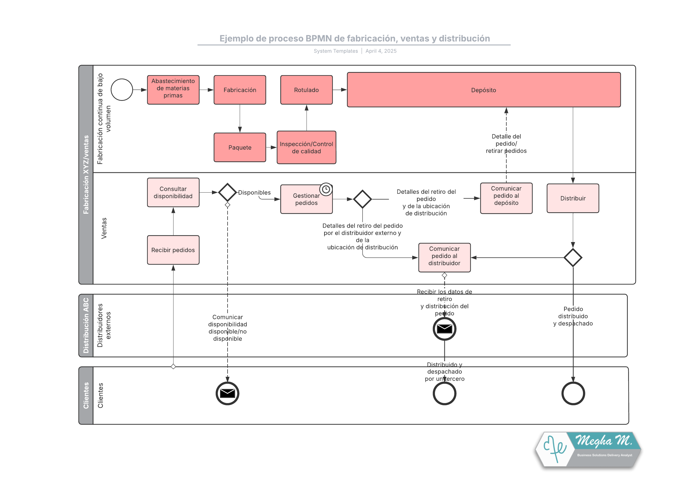 Ejemplo de proceso BPMN de fabricación, ventas y distribución