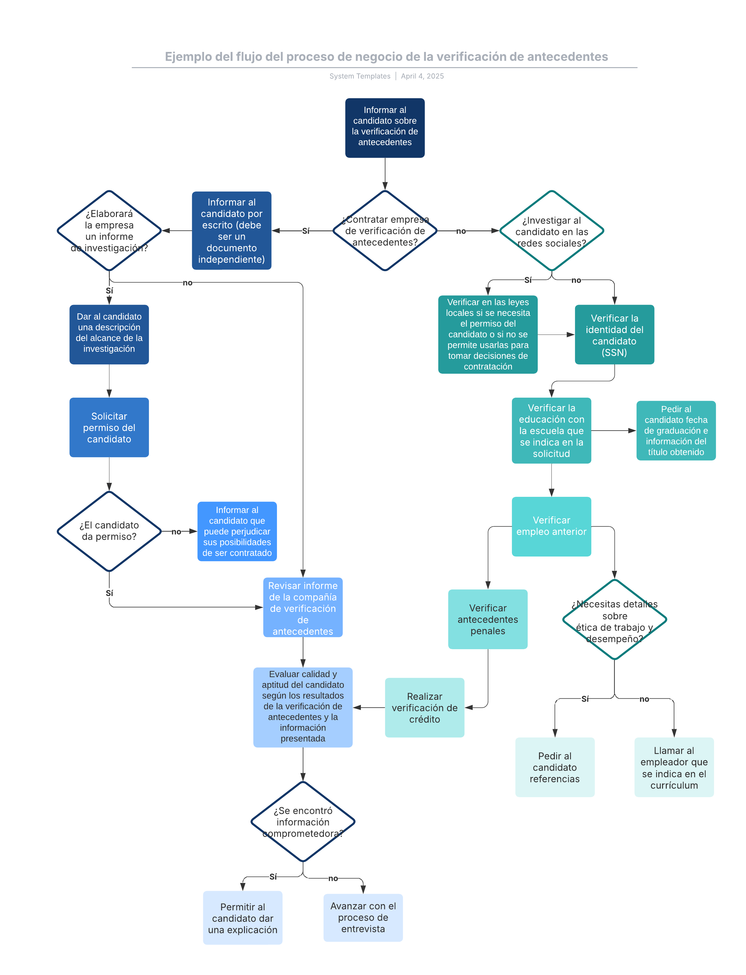 Abre esta plantilla para ver un ejemplo detallado de flujo de proceso de verificación de antecedentes que puedes personalizar según tu caso de uso.