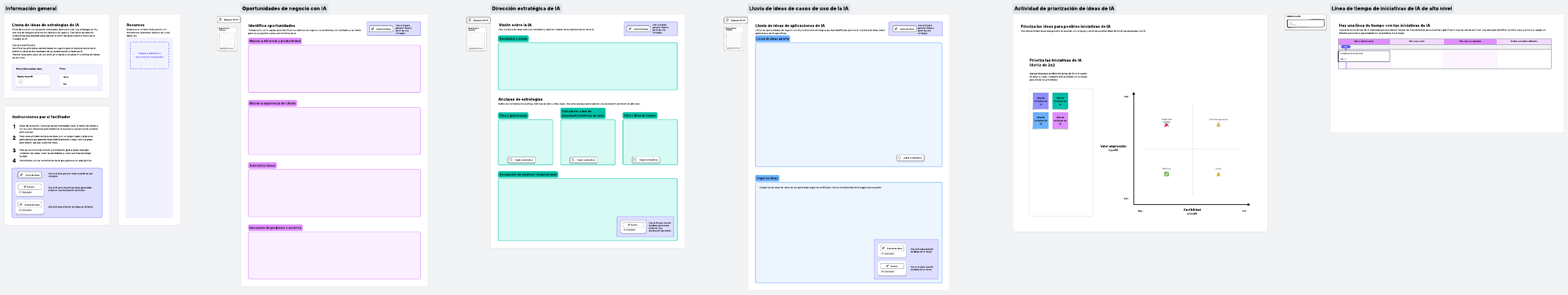 Accede a una hoja de ruta creativa para que las partes interesadas clave se pongan de acuerdo sobre cómo usar la IA para lograr los objetivos comerciales.