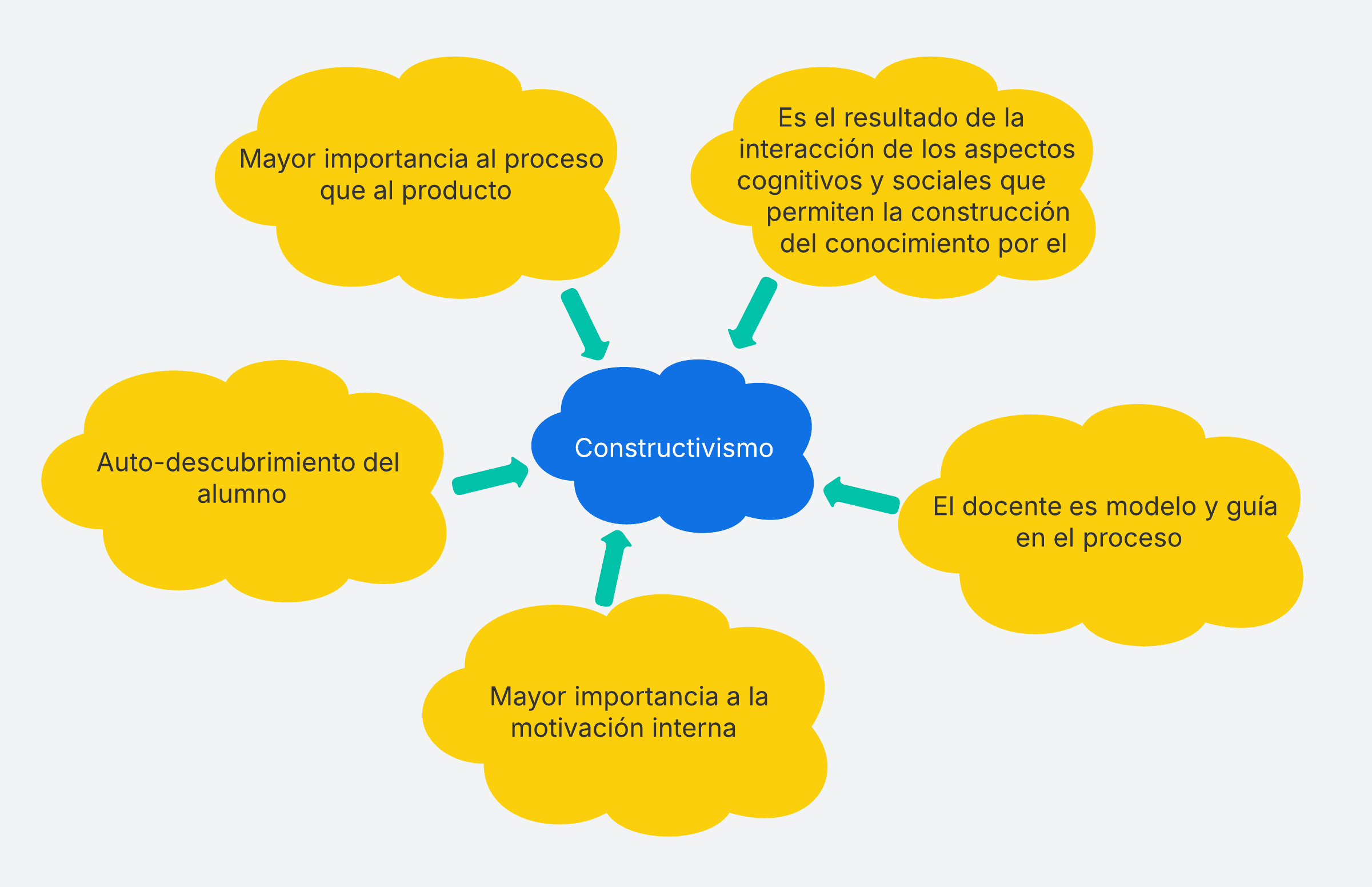 El mapa cognitivo de nubes está compuesto por figuras en forma de nubes. La nube central contiene el tema principal del mapa, y las nubes de alrededor contienen los diferentes subtemas que describen el tema central.