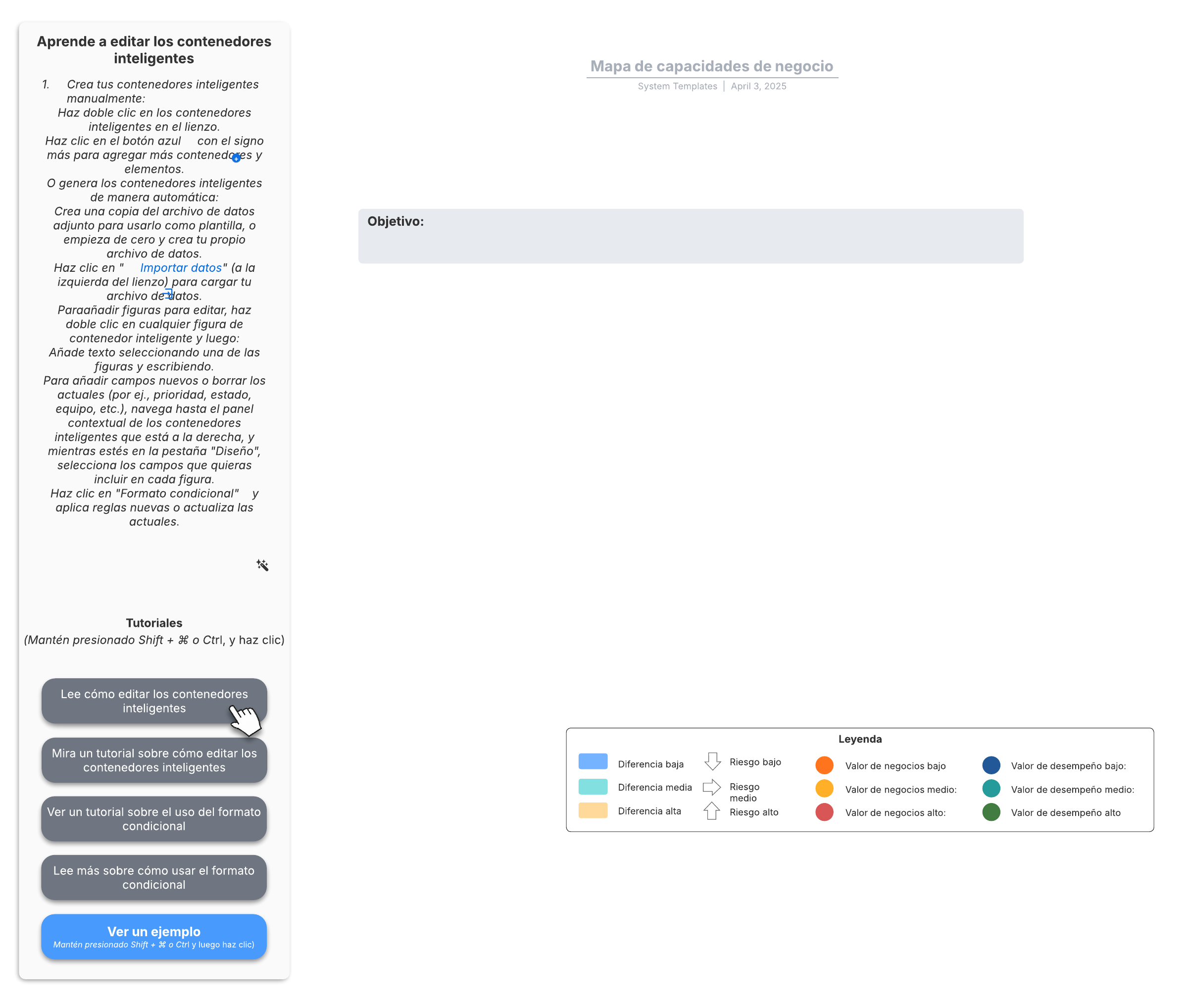 Abre esta plantilla y agrega contenido para personalizar este mapa de capacidades de negocio según tu caso de uso.