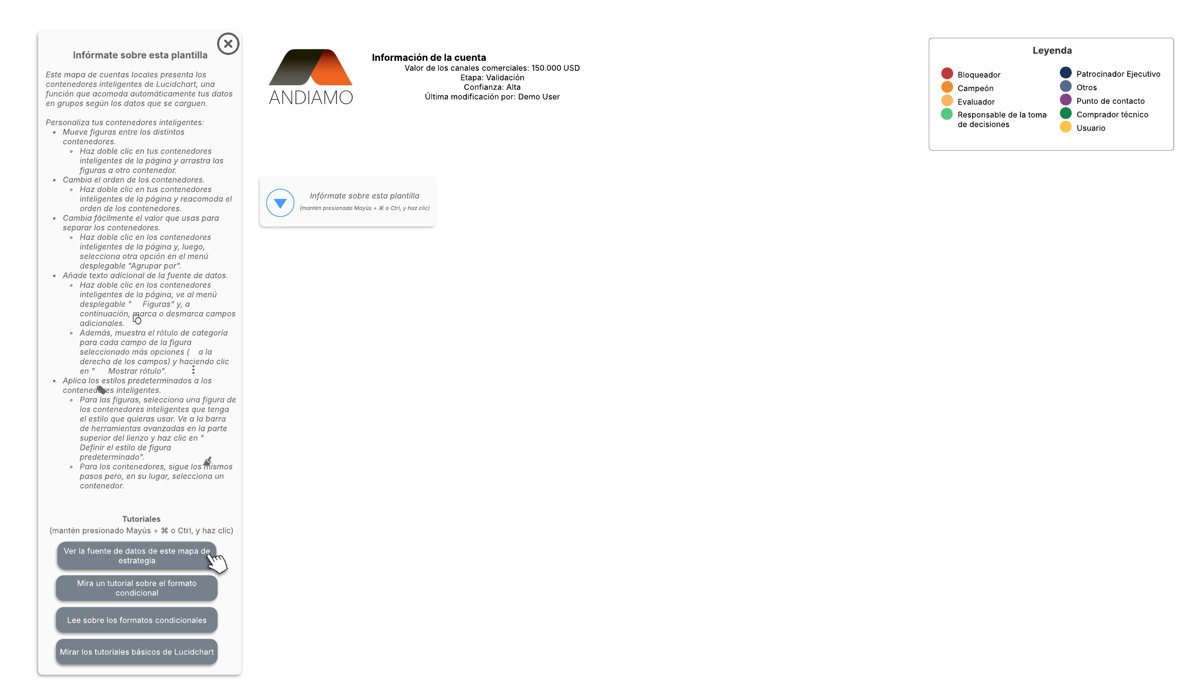 Abre esta plantilla para ver un ejemplo detallado de un mapa de cuentas locales con contenedores inteligentes que puedes personalizar según tu caso de uso.