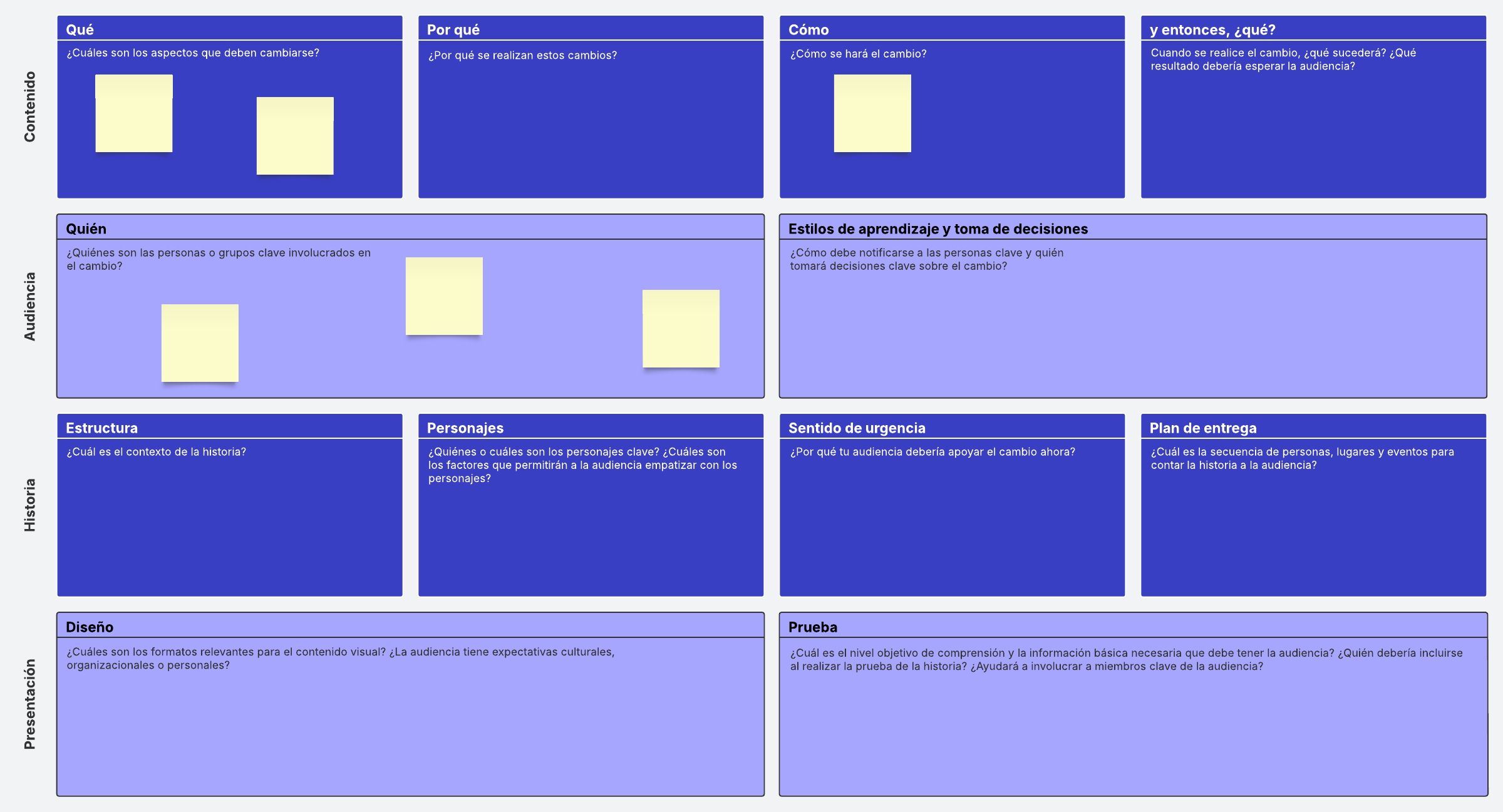 Planifica y describe cambios importantes para tu audiencia (productos, procesos, etc.). Obtén información específica sobre estos cambios y cómo debe contarse la historia tanto desde el punto de vista estructural como visual.