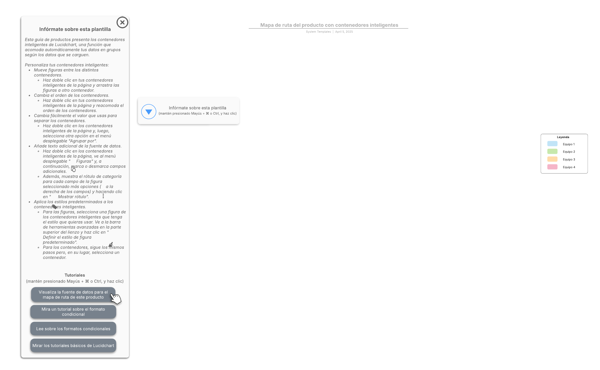 Abre esta plantilla para ver un ejemplo detallado de un mapa de producto con contenedores inteligentes que puedes personalizar según tu caso de uso.
