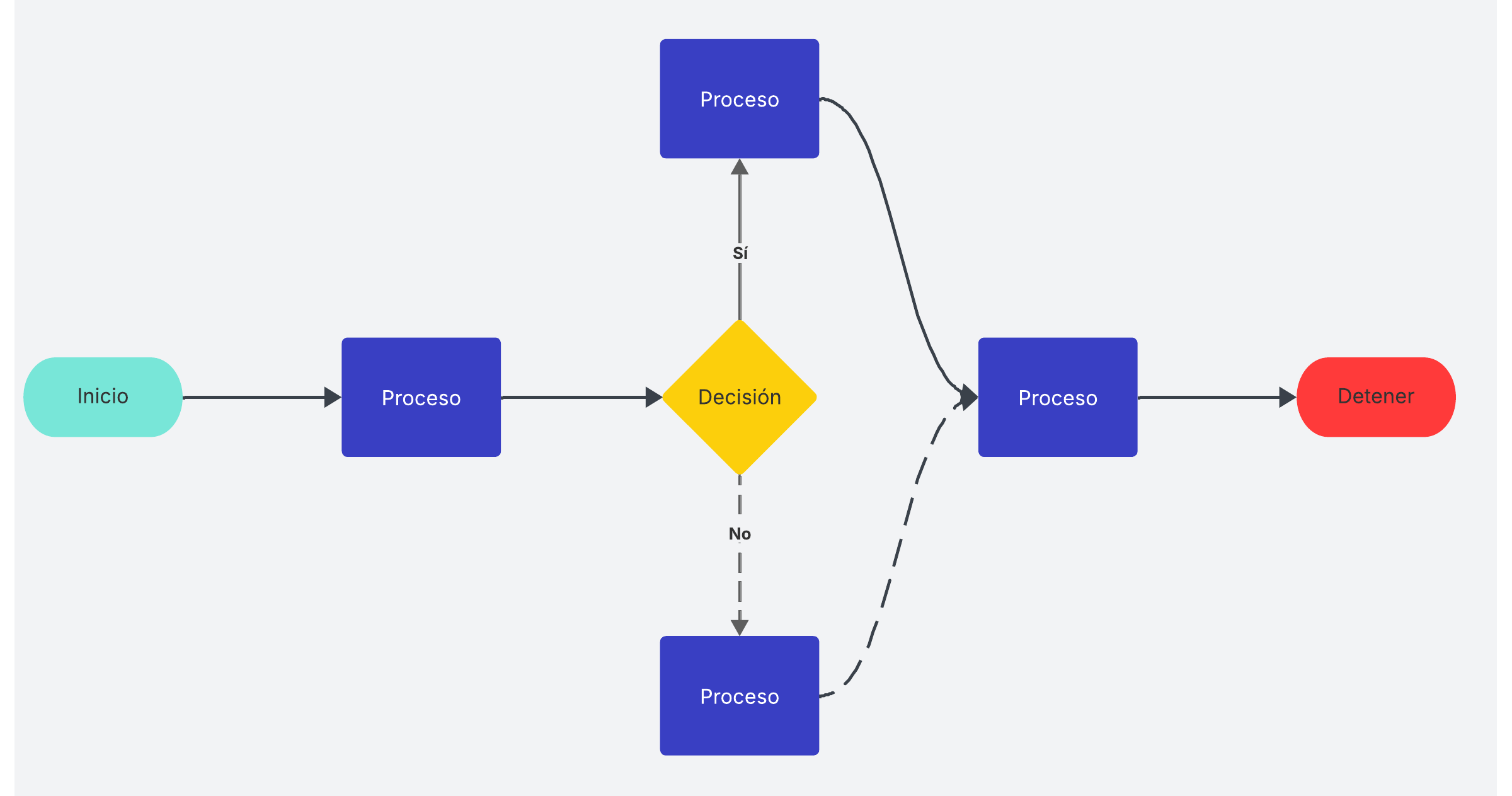 - Rectángulos: representan los diferentes pasos y acciones que deben completarse dentro de un proceso.