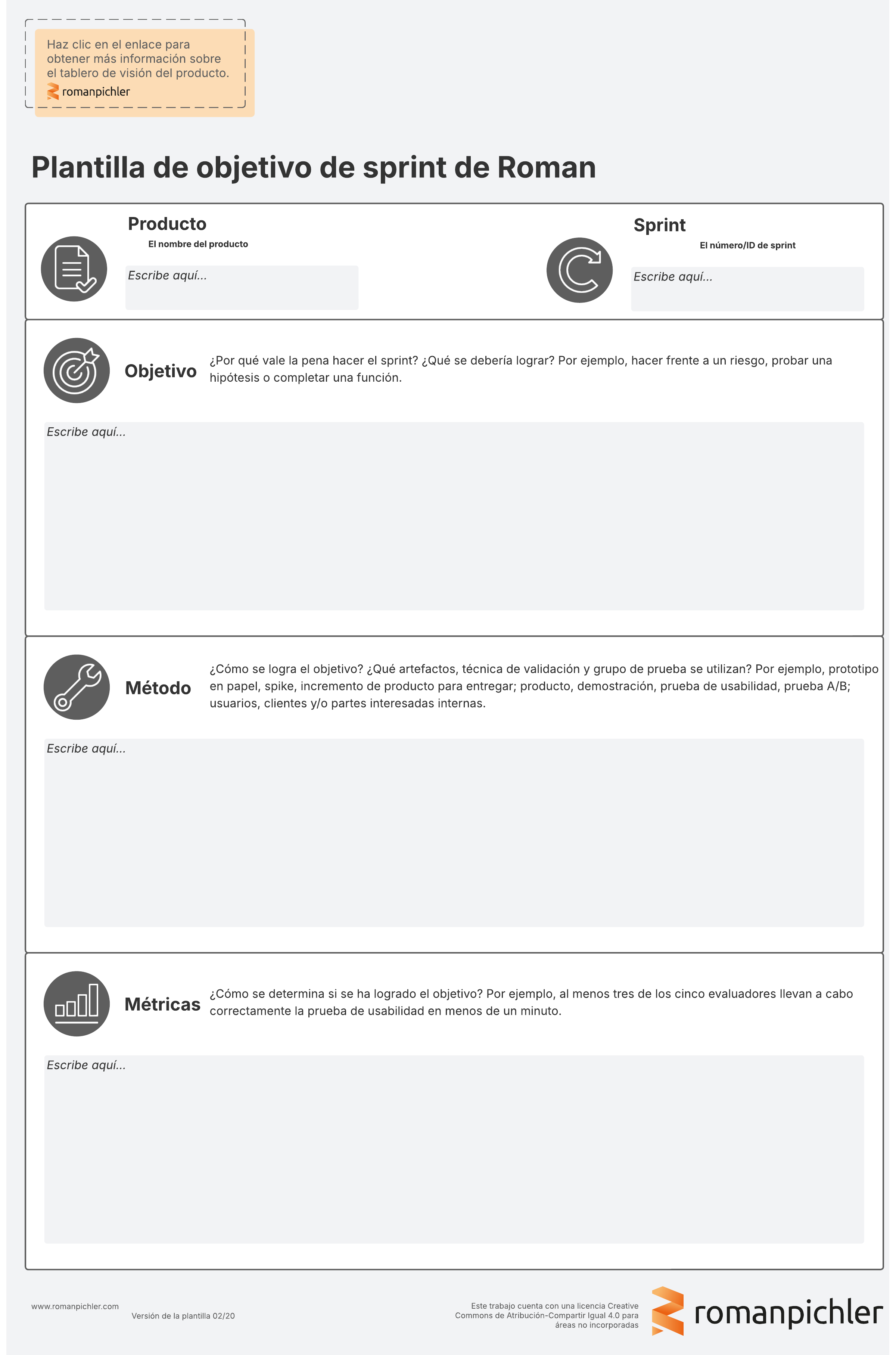 Formula grandes objetivos de sprint respondiendo las siguientes preguntas: ¿por qué realizas el sprint? ¿Cómo vas a lograr el objetivo? ¿Cómo sabes que el objetivo se ha logrado?