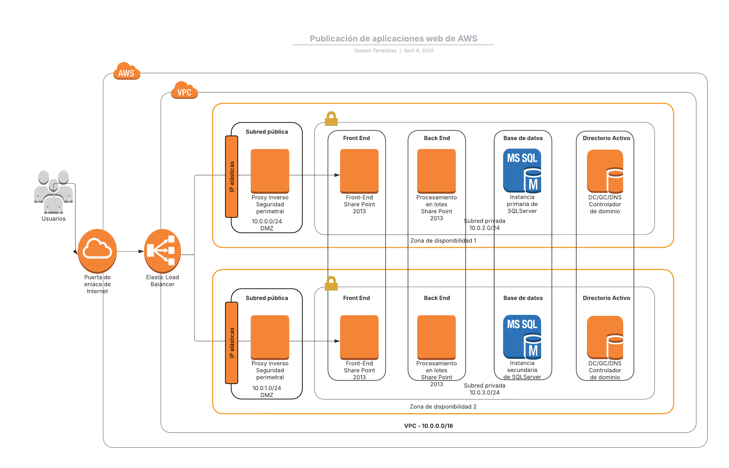 Abre esta plantilla para acceder a un ejemplo detallado de un diagrama AWS que puedes personalizar según tu caso de uso.