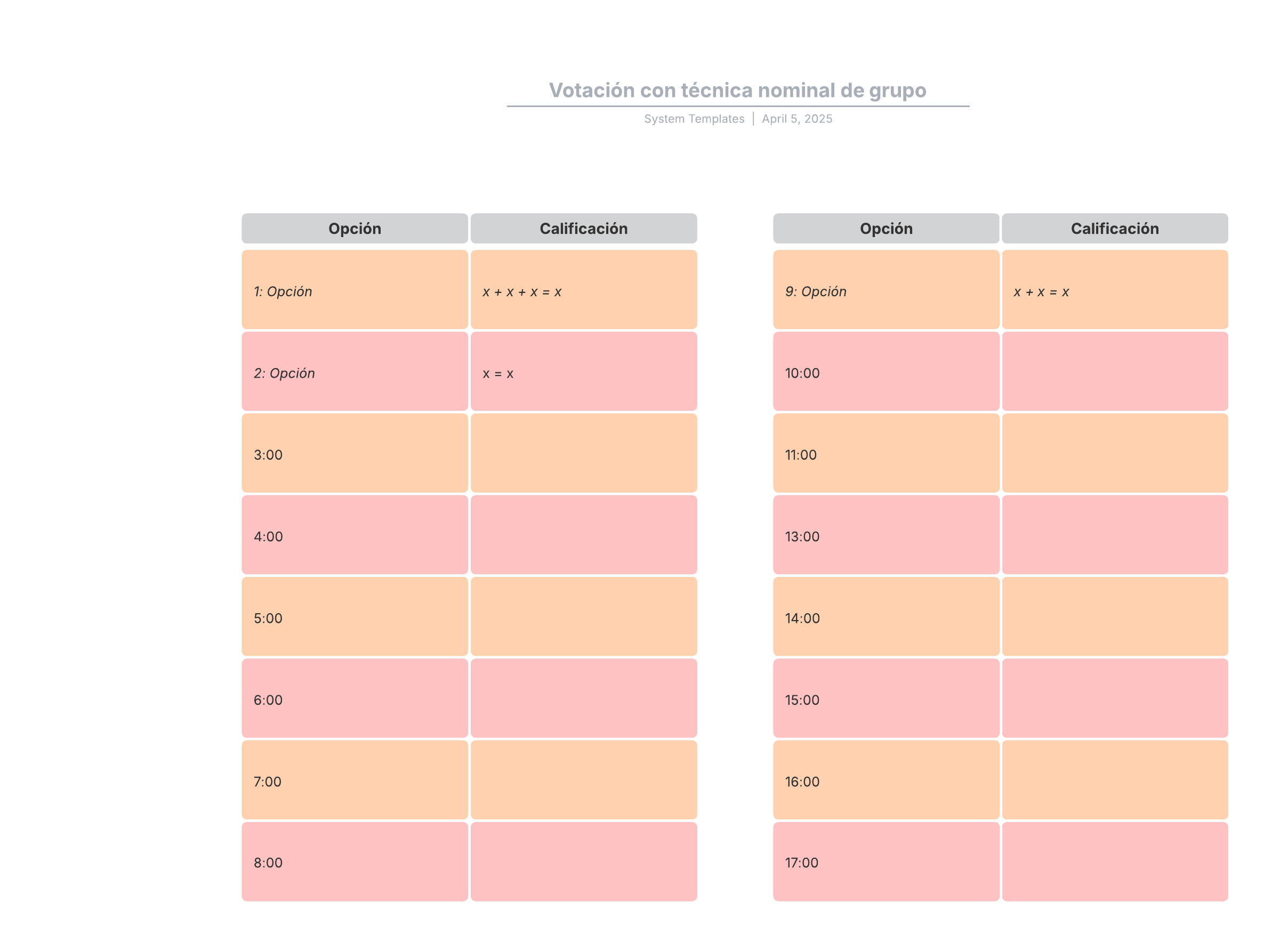 Esta plantilla de votación con técnica nominal de grupo puede ayudarte a: