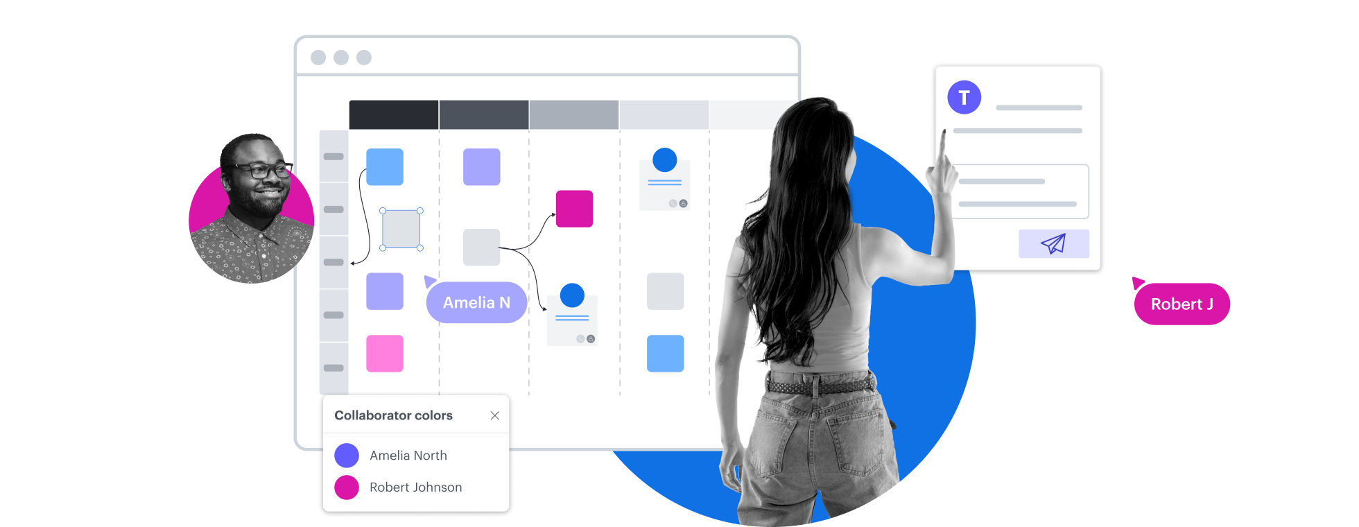 Usa la Suite de colaboración visual de Lucid para proponer ideas y lanzar campañas que deleitan a los clientes, impulsan los ingresos y aumentan la interacción con tu marca.
