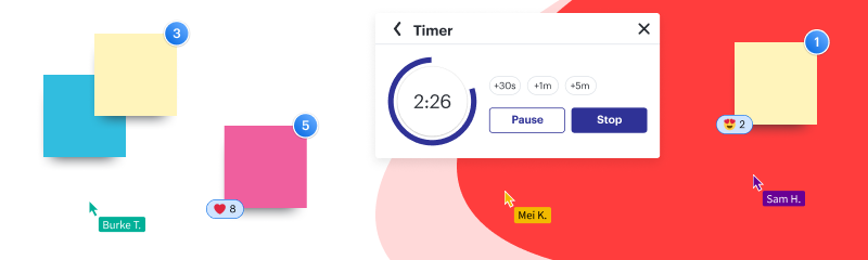 Dans cet espace de travail collaboratif, vous pouvez convertir vos idées en post-its, programmer un minuteur pour votre session ou encore utiliser le mode vote pour envoyer une demande de vote aux participants et visualiser instantanément les résultats.