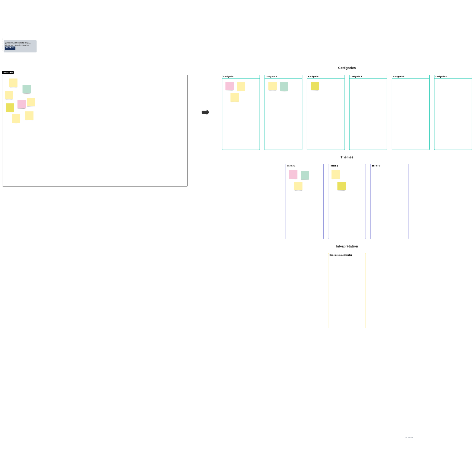 Utilisez notre logiciel de diagramme des affinités pour catégoriser les pensées, idées et données issues de votre session de brainstorming, et les transformer en pistes d’action.