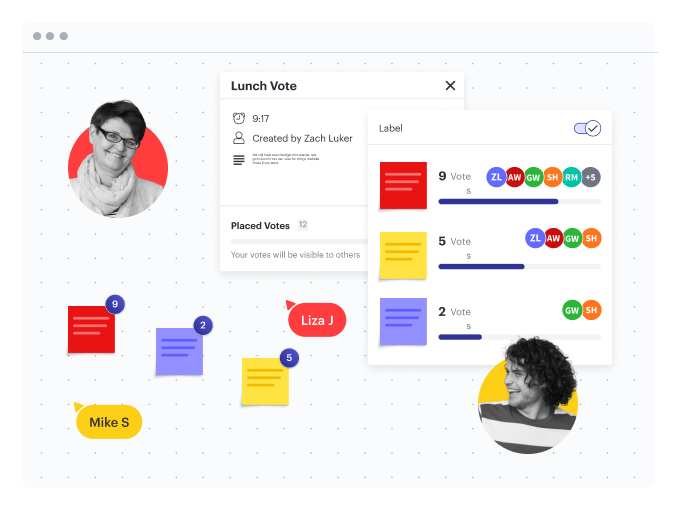 Votez en équipe sur vos idées préférées sans vous disperser. La fonction de minuteur permet de maintenir le rythme de la réunion, tandis que la fonction de vote donne la parole à tout le monde.