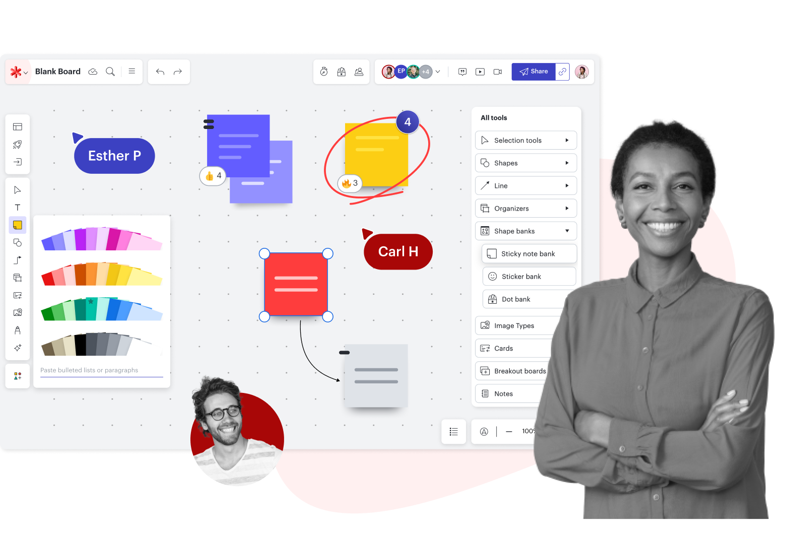 Créez des idées avec des post-its virtuels, planifiez des projets et agissez plus rapidement.