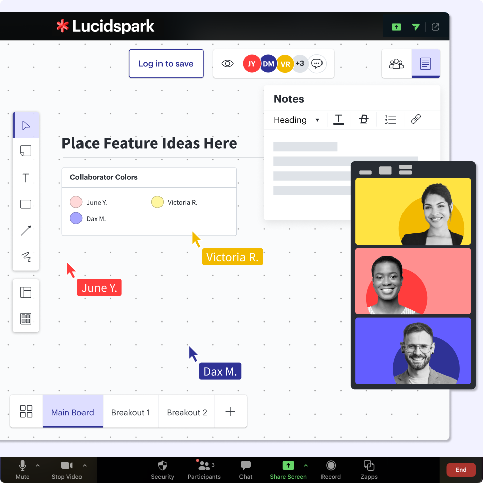 Animez des séances de travail dynamiques avec votre équipe en utilisant l'application Lucidspark pour Zoom. Créez et partagez des tableaux, collaborez pendant vos réunions Zoom et organisez votre brainstorming pour donner vie à vos idées.