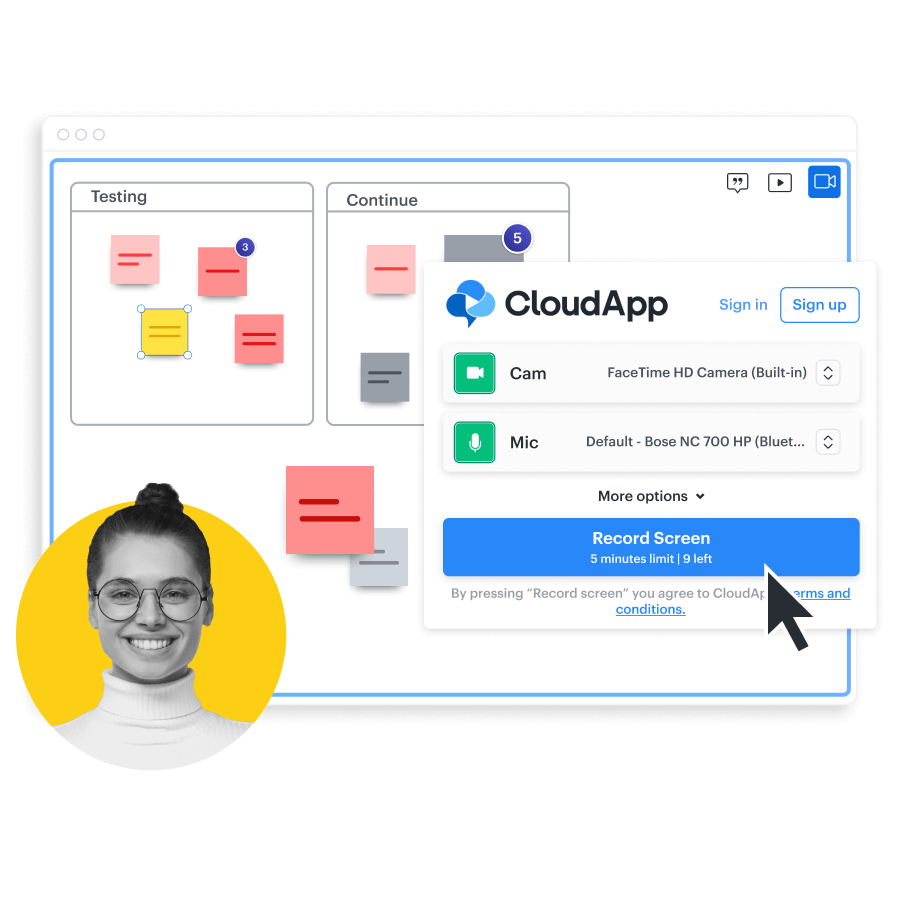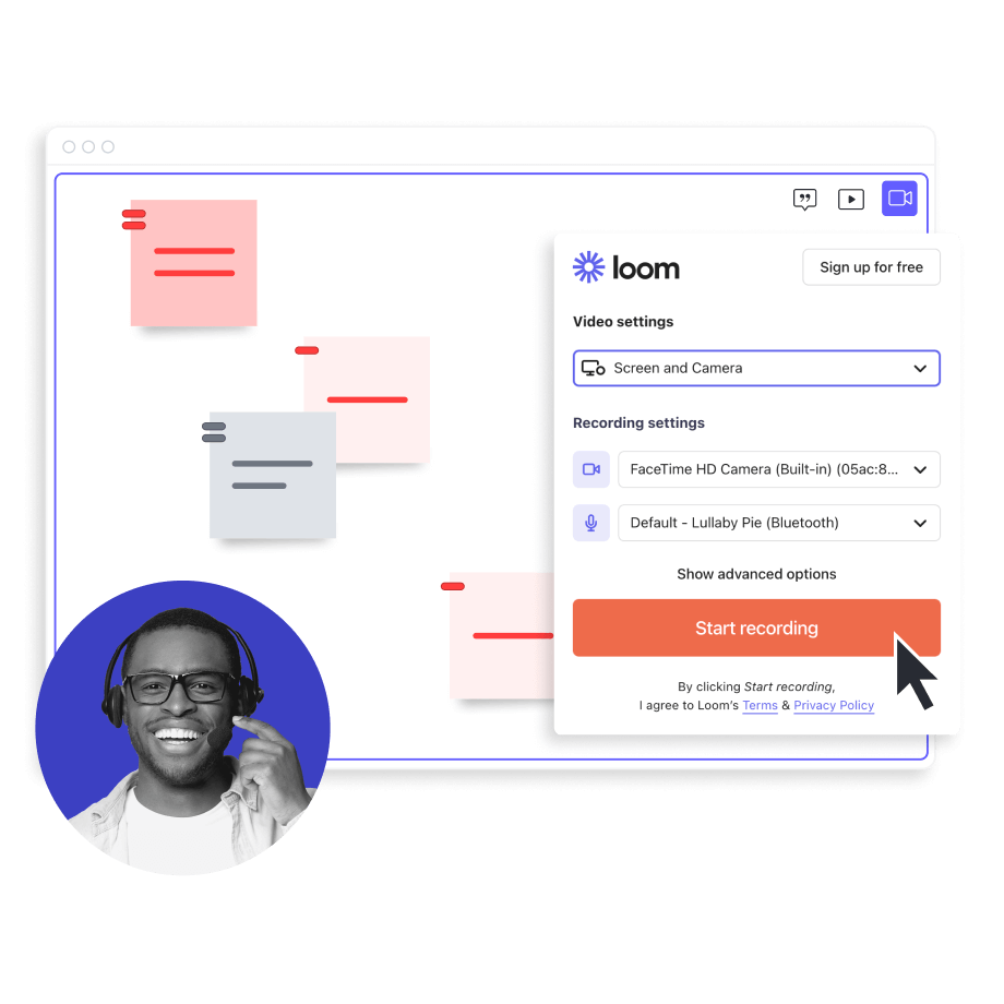 Enregistrez facilement votre écran ou votre webcam. Intégrez ensuite l’enregistrement directement dans votre tableau Lucidspark pour fournir un contexte supplémentaire à vos collaborateurs asynchrones.
