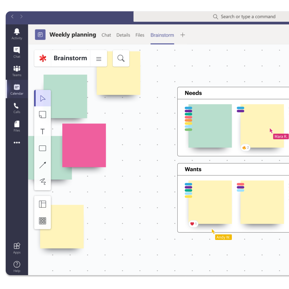 Organisez des brainstormings et collaborez sur notre tableau blanc virtuel directement depuis Microsoft Teams. Ajoutez un tableau Lucidspark sous forme d'onglet dans votre discussion d'équipe. Grâce à l'éditeur intégré, tous les membres de la discussion peuvent modifier ou commenter votre tableau sans jamais quitter Microsoft Teams.