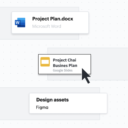 Créez une source unique de vérité en intégrant des liens Microsoft OneDrive, Google Workspace et Figma directement dans vos tableaux Lucidspark. En rassemblant les éléments de contexte importants dans un espace partagé, vous pouvez tenir votre équipe informée des derniers développements tout au long d’un projet.