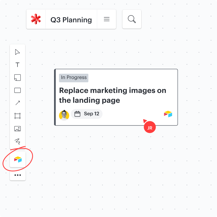 Importez des tâches Asana dans Lucidspark sous forme de cartes Lucid, ou organisez une séance de brainstorming avec votre équipe, puis mettez ces idées en pratique en transférant directement les tâches dans Asana.