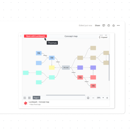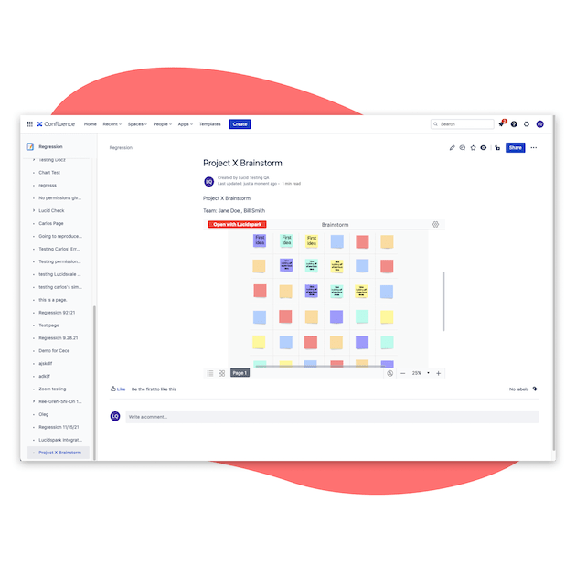Intégrez vos tableaux Lucidspark dans Confluence pour réaliser des ateliers d’idéation, de brainstorming et de planification. Cette intégration vous offre les avantages et les fonctionnalités de la collaboration visuelle directement dans votre page Confluence.