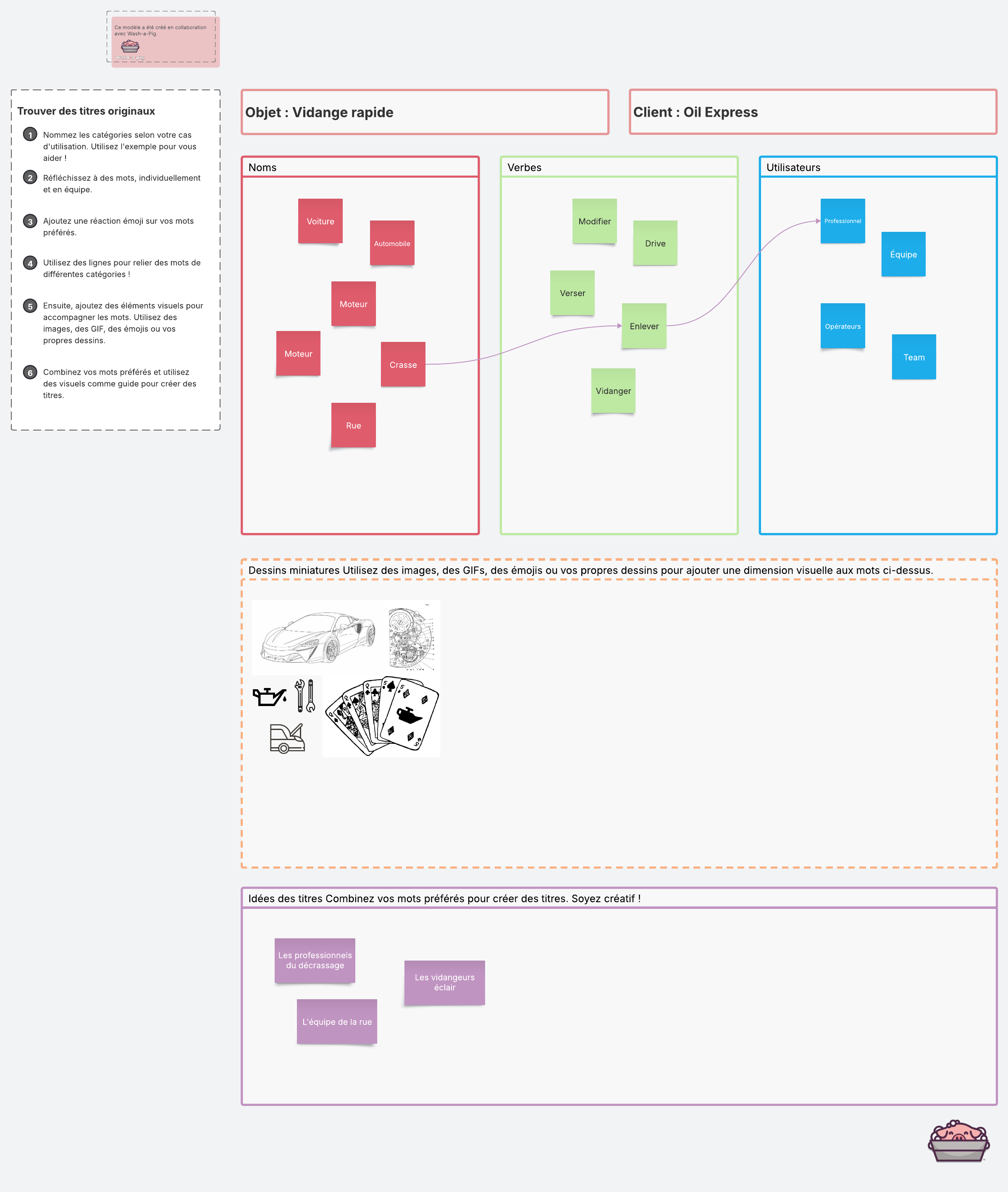 Modèle de brainstorming de titres à l'aide de Wash-a-Pig