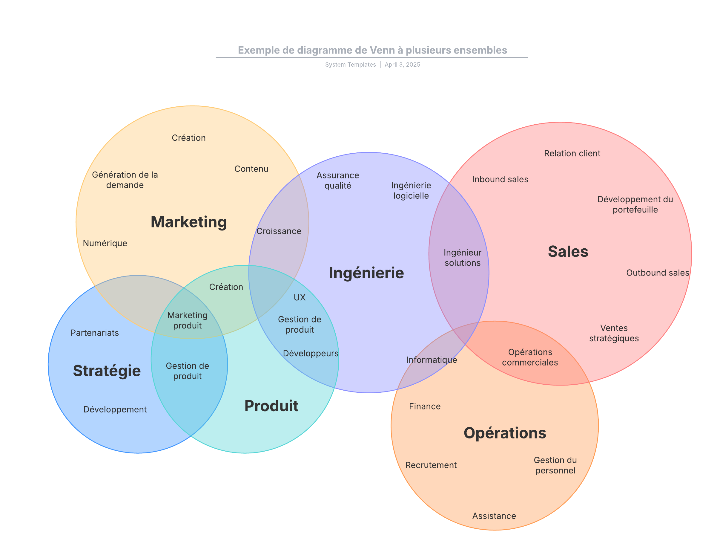 Ouvrez ce modèle pour visualiser un exemple détaillé de diagramme d'Euler à plusieurs ensembles, à personnaliser selon votre cas d'utilisation.