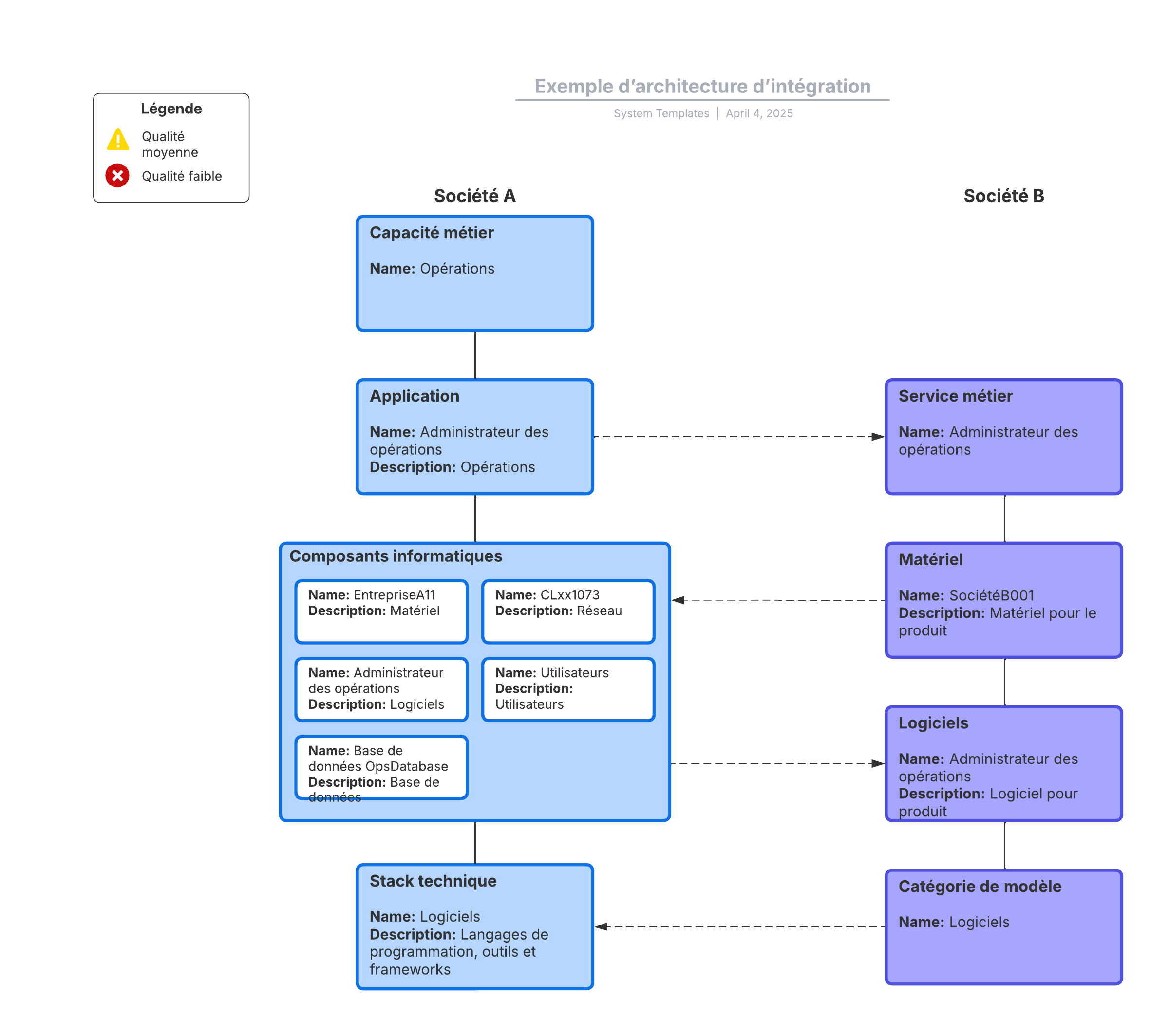 Ouvrez ce modèle pour afficher un exemple détaillé d'intégration d'architecture, à personnaliser selon votre cas d'utilisation.