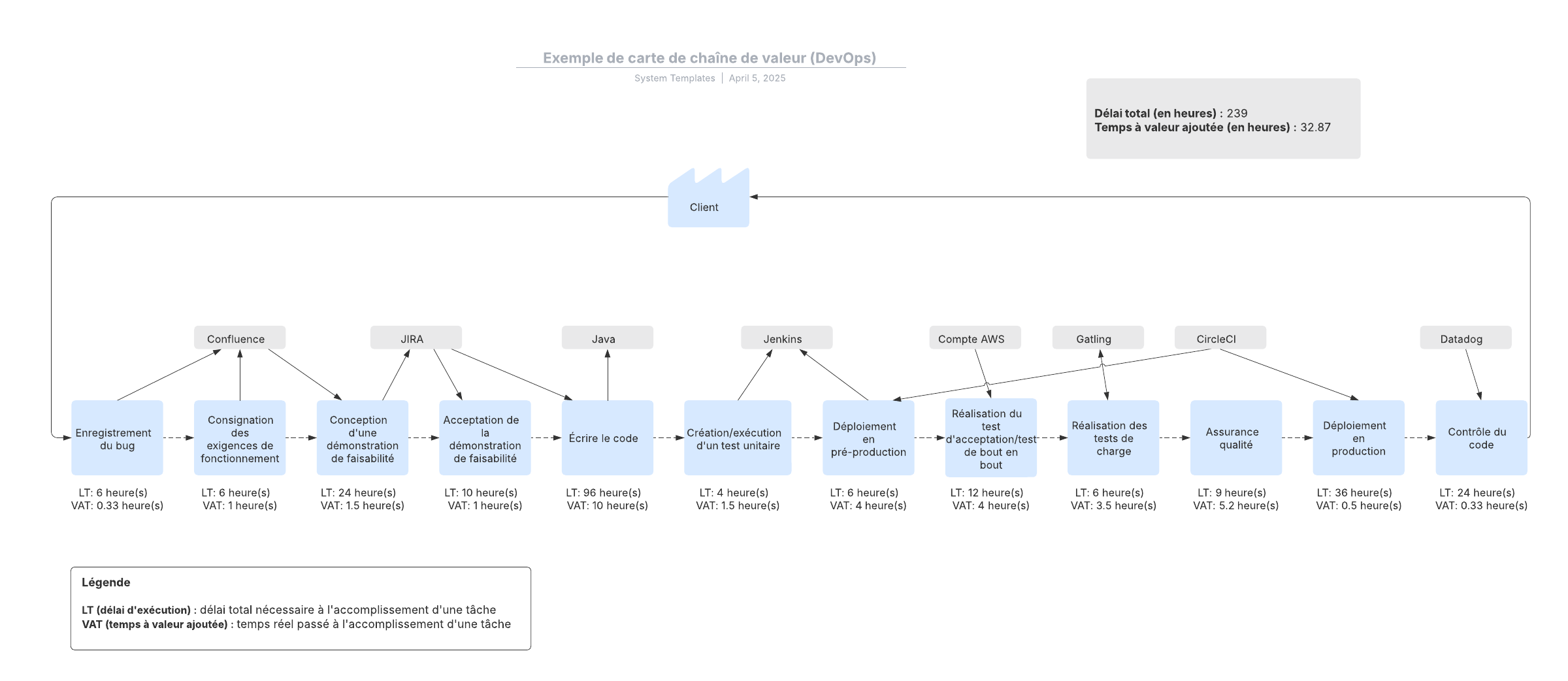 Exemple de carte de chaîne de valeur (DevOps)