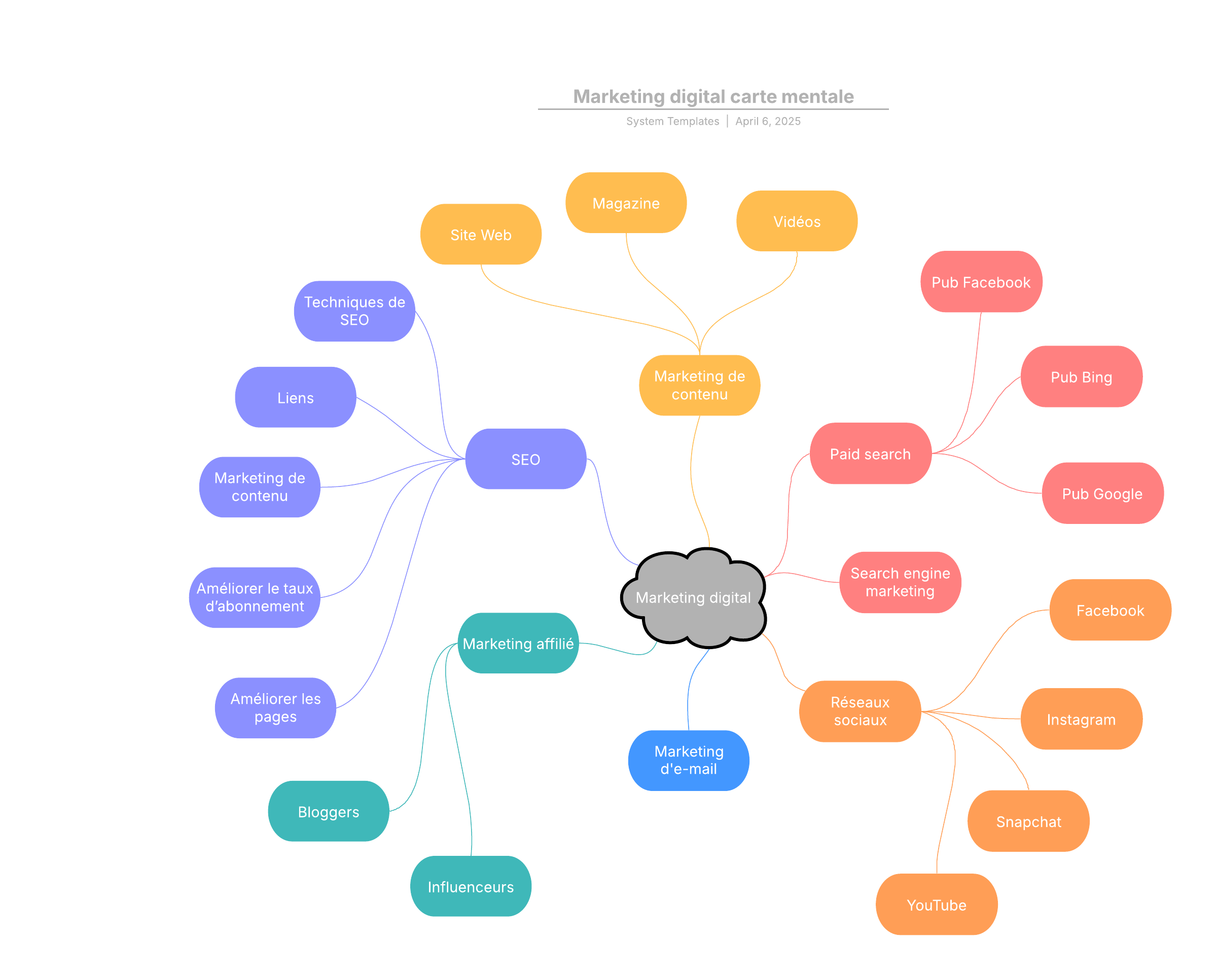 Exemple de carte mentale sur le marketing digital