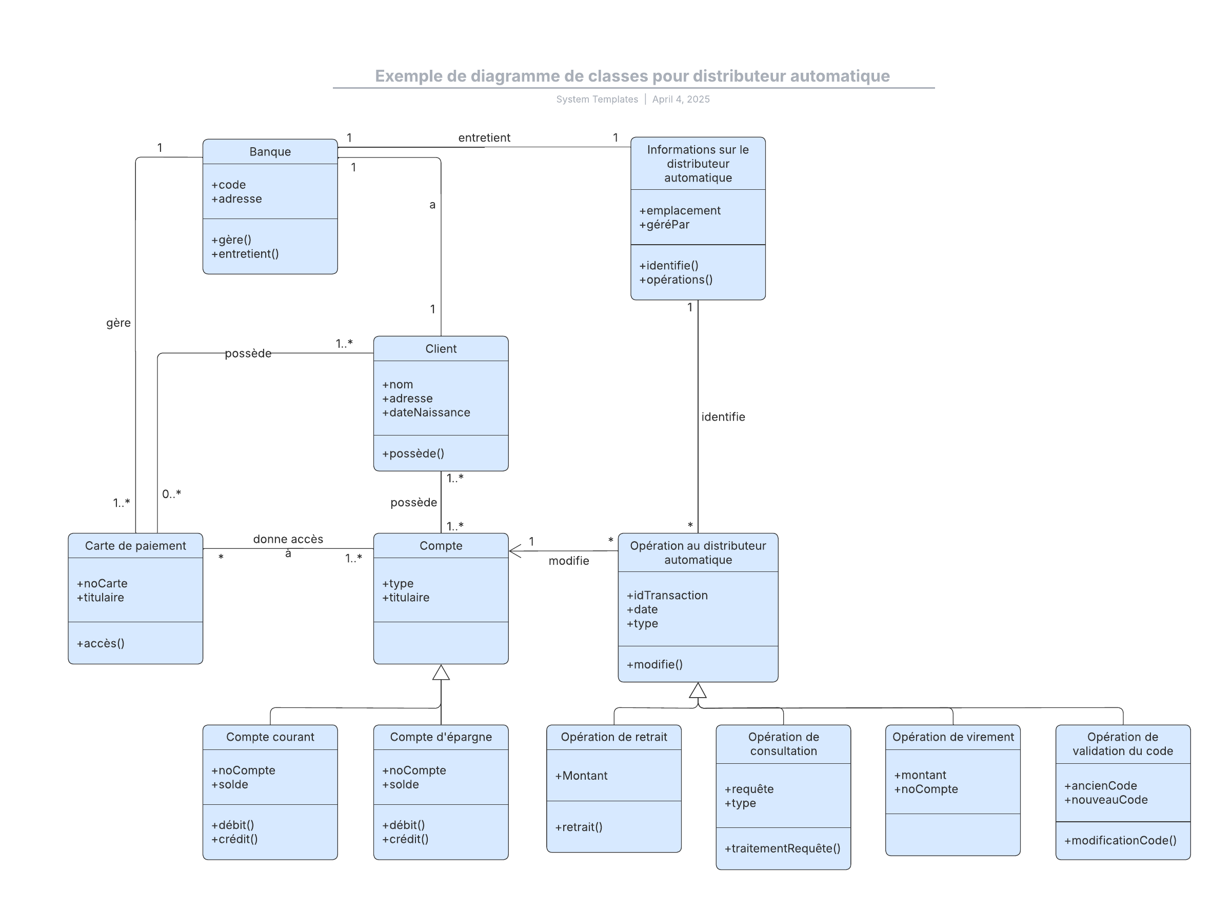 Exemple de diagramme de classes UML pour DAB