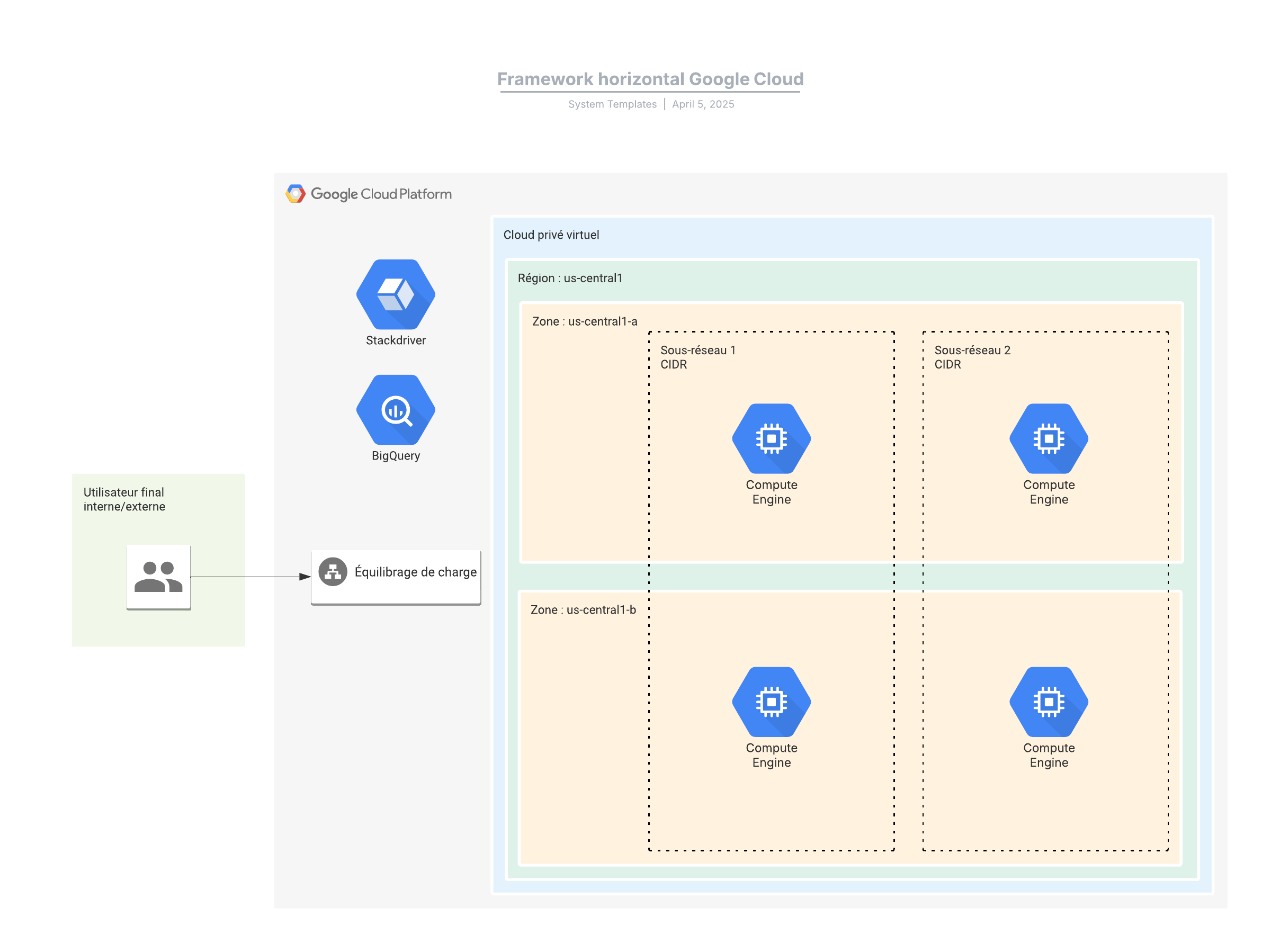 Ce modèle de framework horizontal Google Cloud basique peut vous aider à :