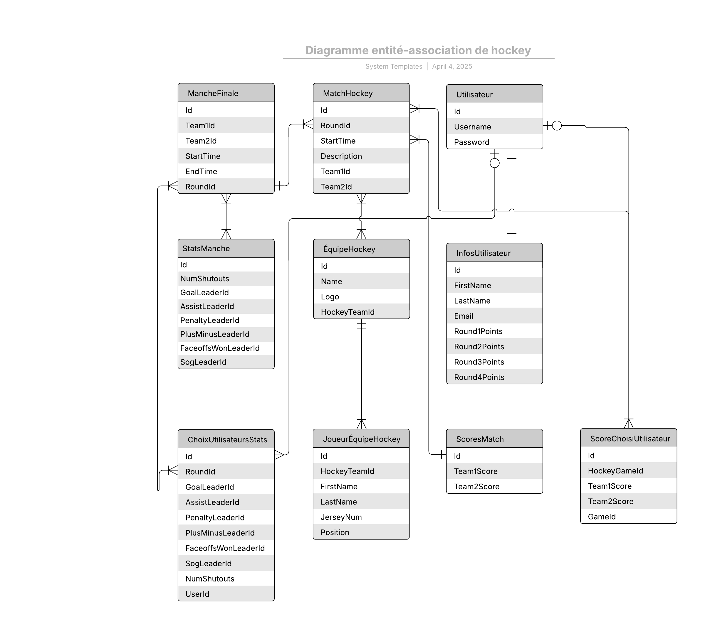 Ce modèle de diagramme entité-association de hockey peut vous aider à :