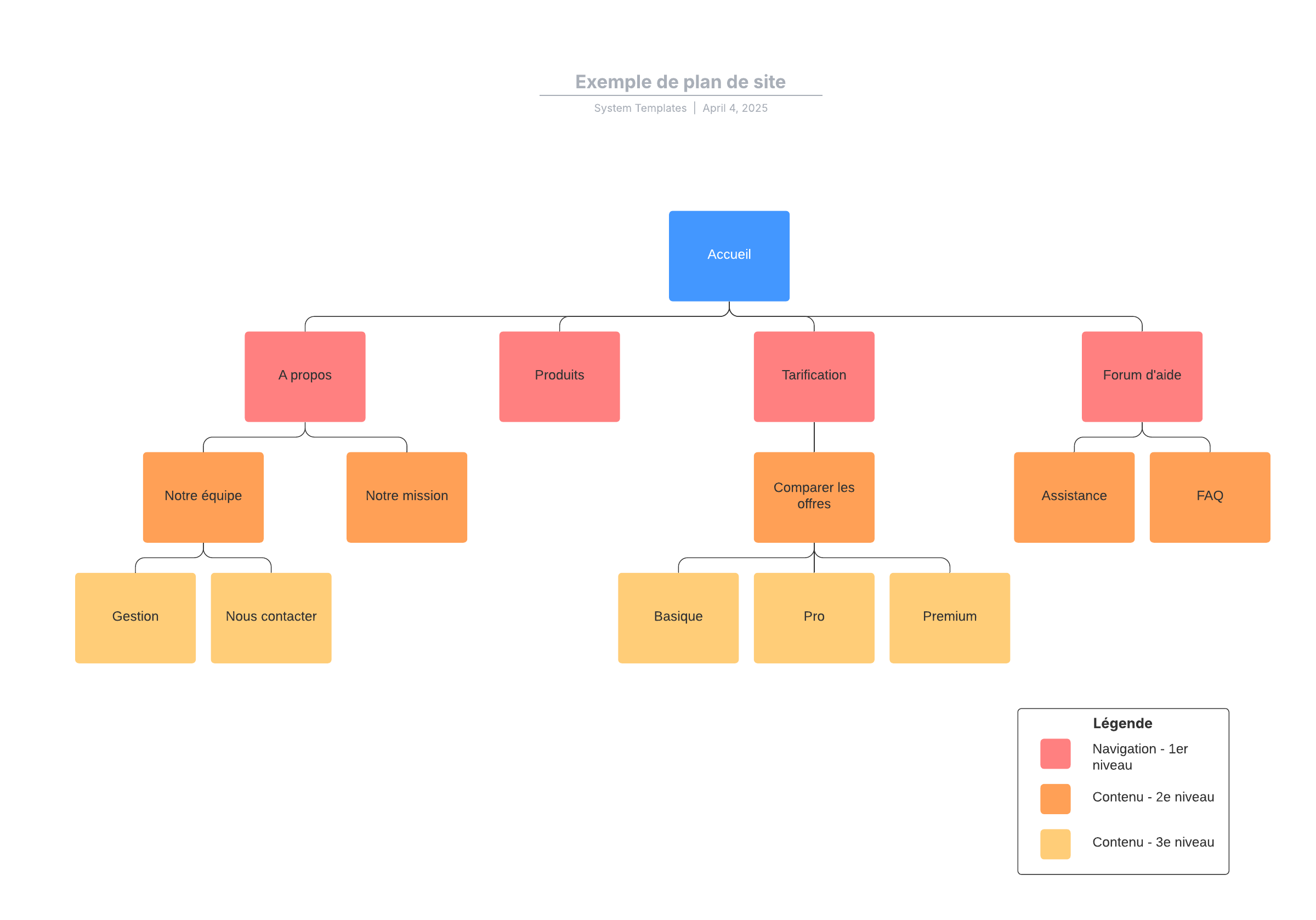 Ouvrez ce modèle pour afficher un exemple détaillé de plan de site que vous pouvez personnaliser selon votre cas d'utilisation.