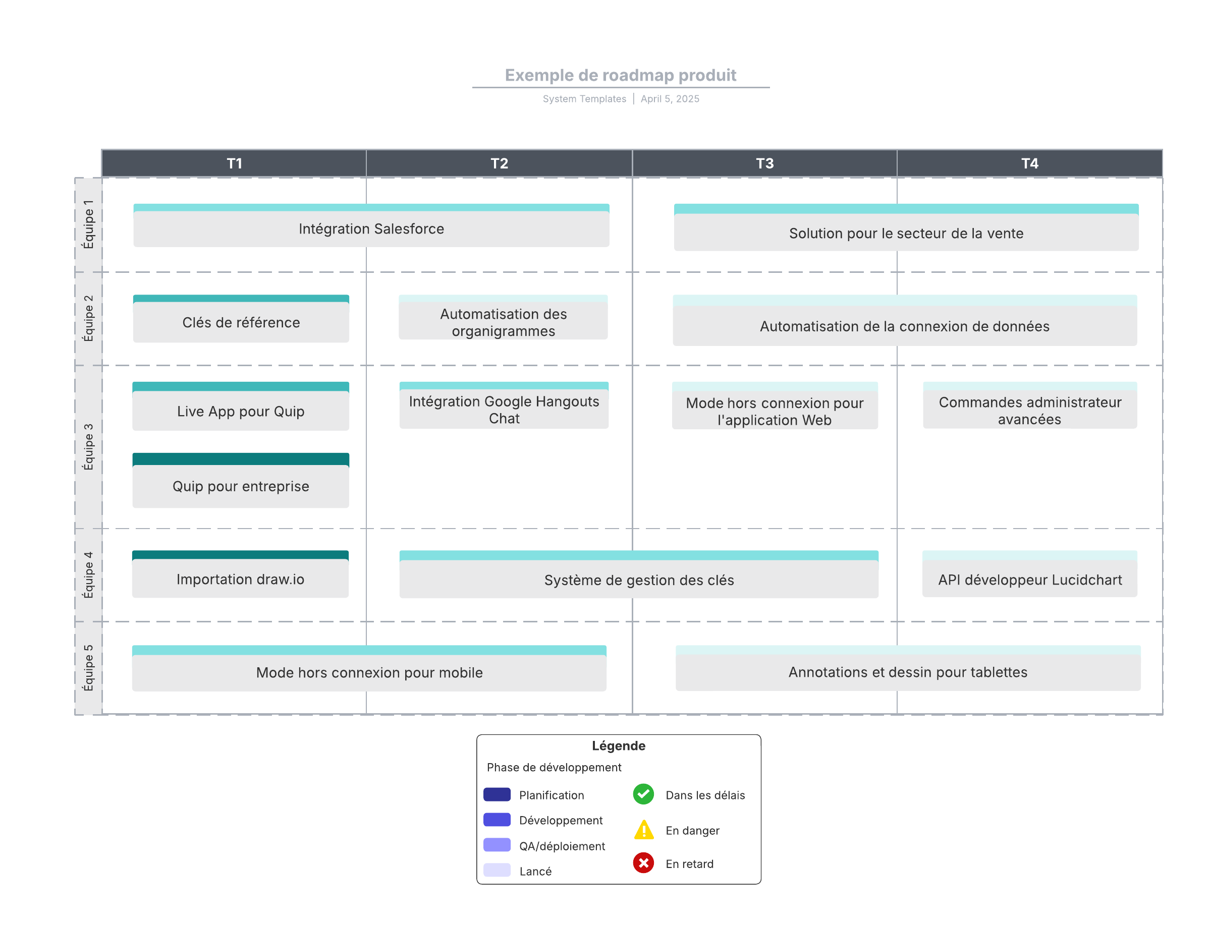 Ouvrez ce modèle pour afficher un exemple détaillé de roadmap produit que vous pouvez personnaliser selon votre cas d'utilisation.