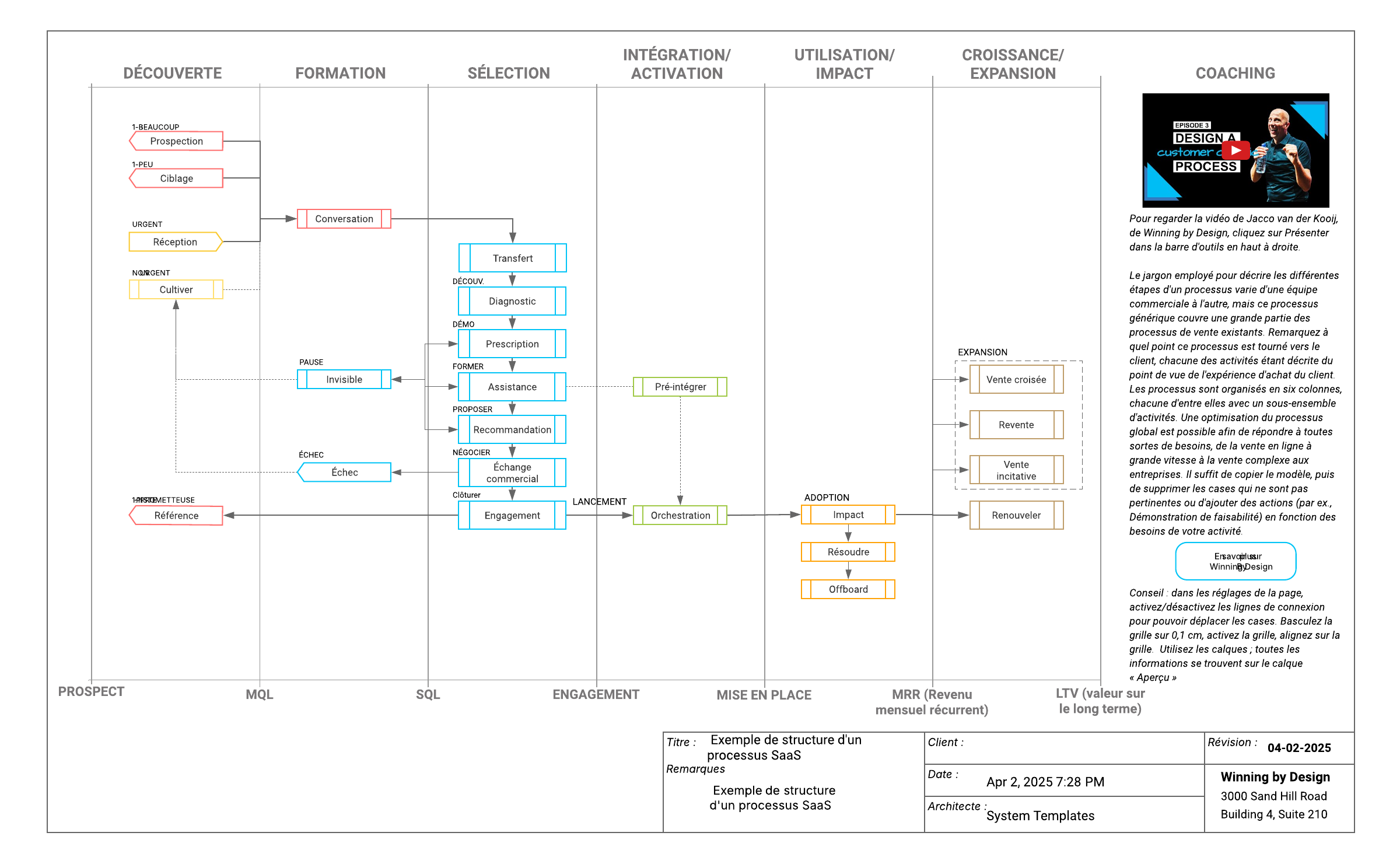 Ce modèle de structure d'un processus SaaS de Winning By Design peut vous aider à :