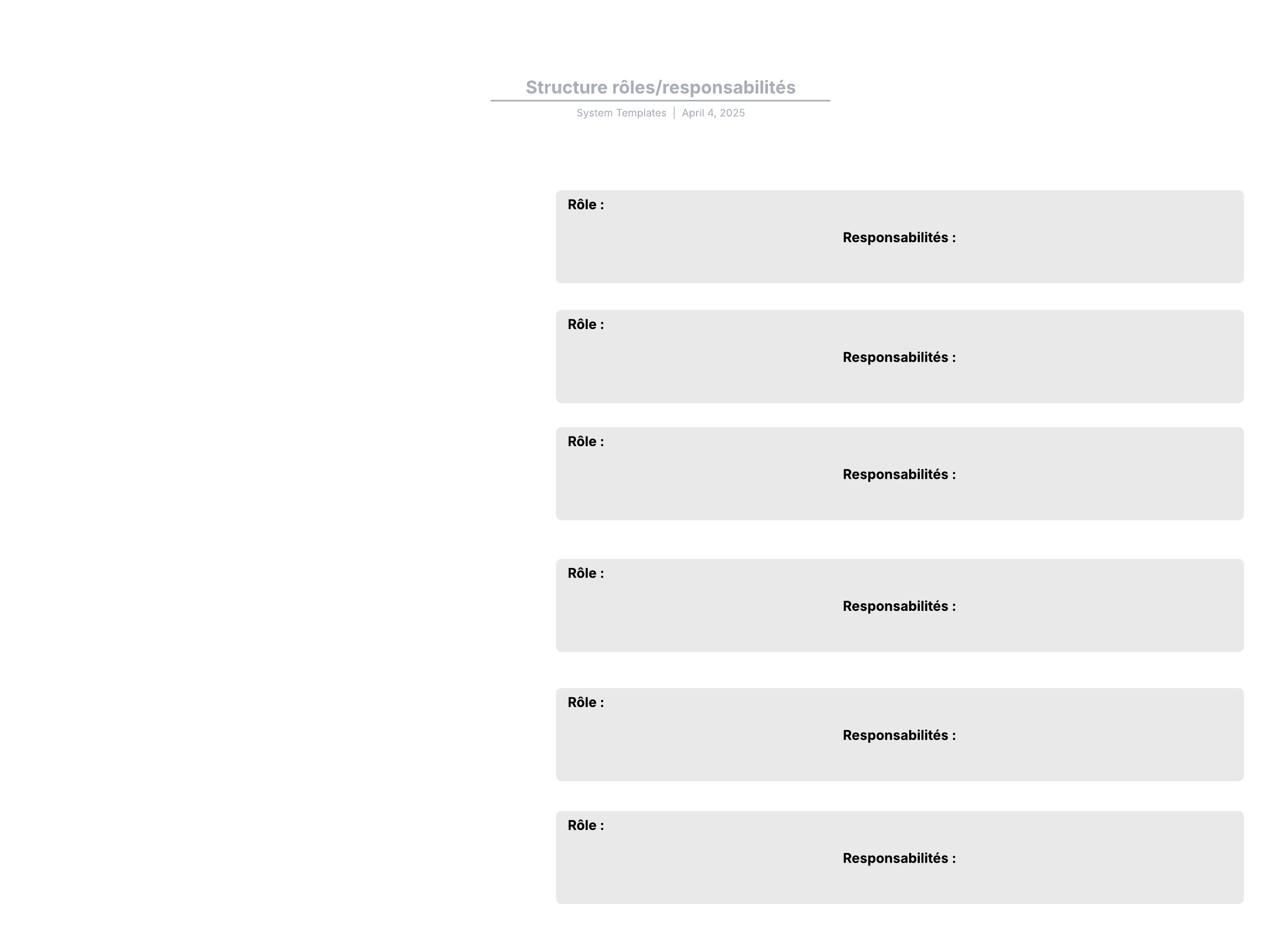 Ce modèle de structure rôles/responsabilités peut vous aider à :