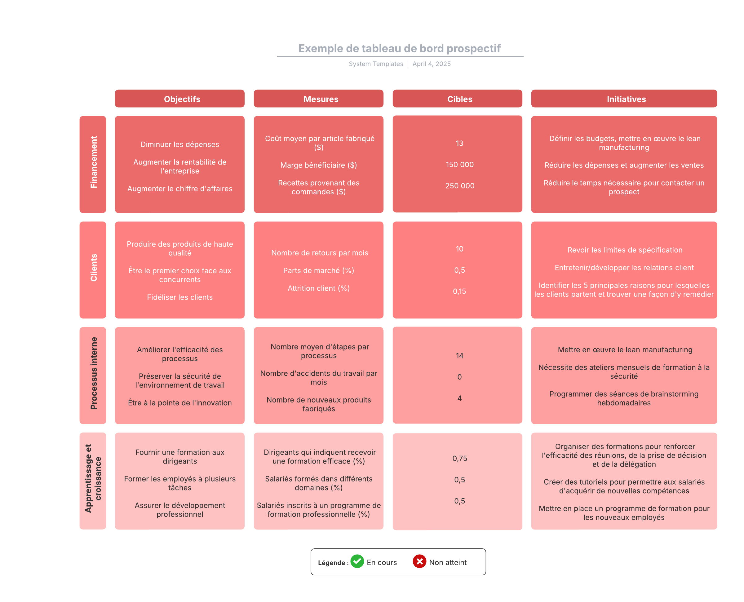 Grâce à ce modèle de tableau de bord prospectif, vous pourrez :