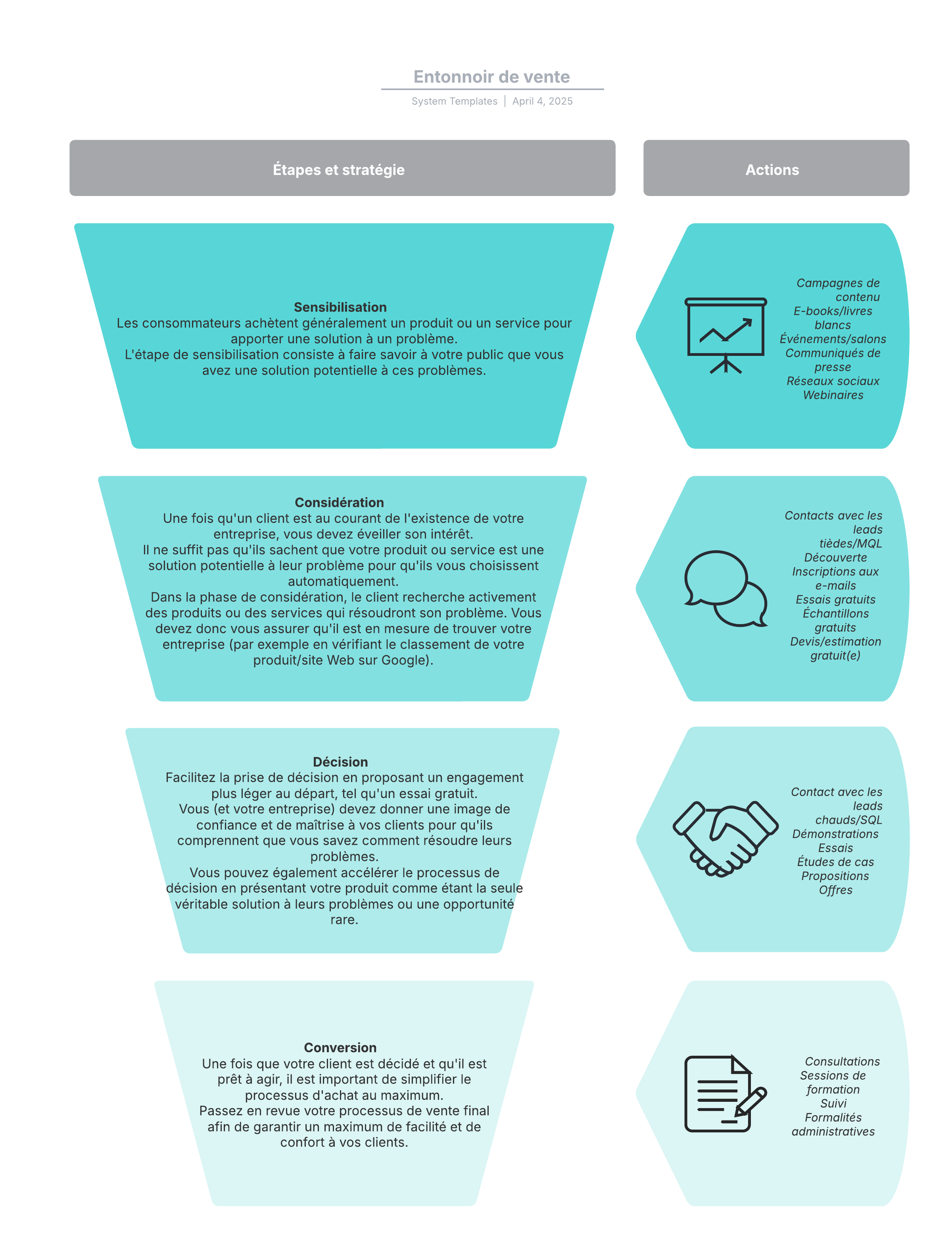 Ouvrez ce modèle d'entonnoir de vente et ajoutez-y du contenu pour le personnaliser selon votre cas d'utilisation.