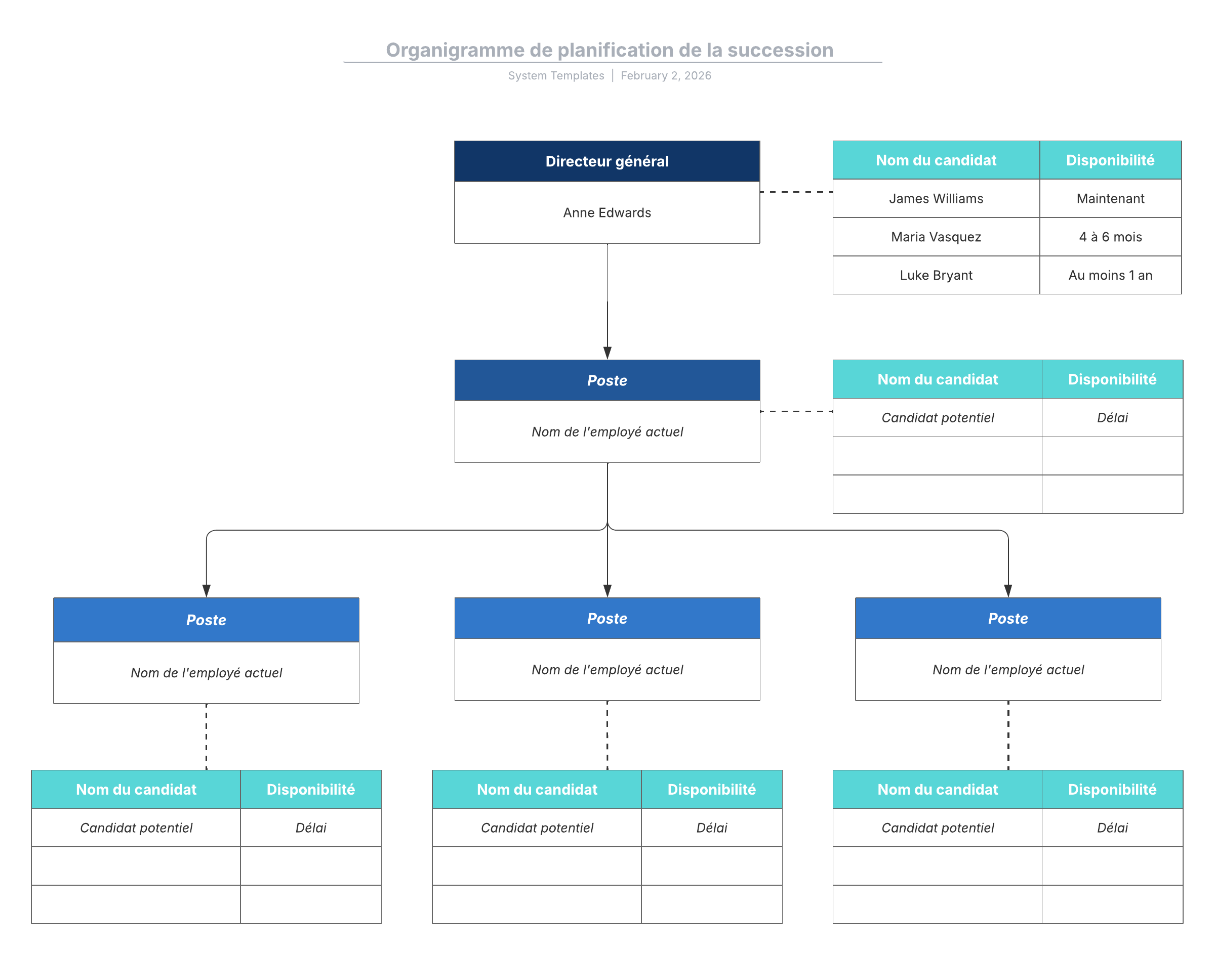 Ce modèle d'organigramme de planification de succession peut vous aider à :