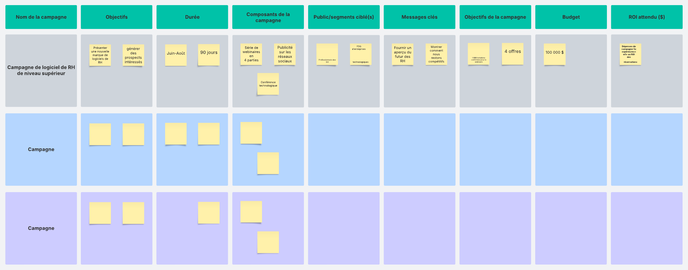 Définissez l'idée clé de votre prochaine campagne marketing avec ce modèle de planification.