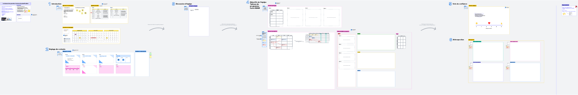 Accélérez vos grandes réunions de planification grâce à ce modèle Entreprise conçu pour réduire le temps de configuration de votre tableau. Il exploite les fonctionnalités intelligentes de Lucid, telles que les pré-configurations de groupes de discussion et d’intégrations, pour optimiser vos sessions de planification.