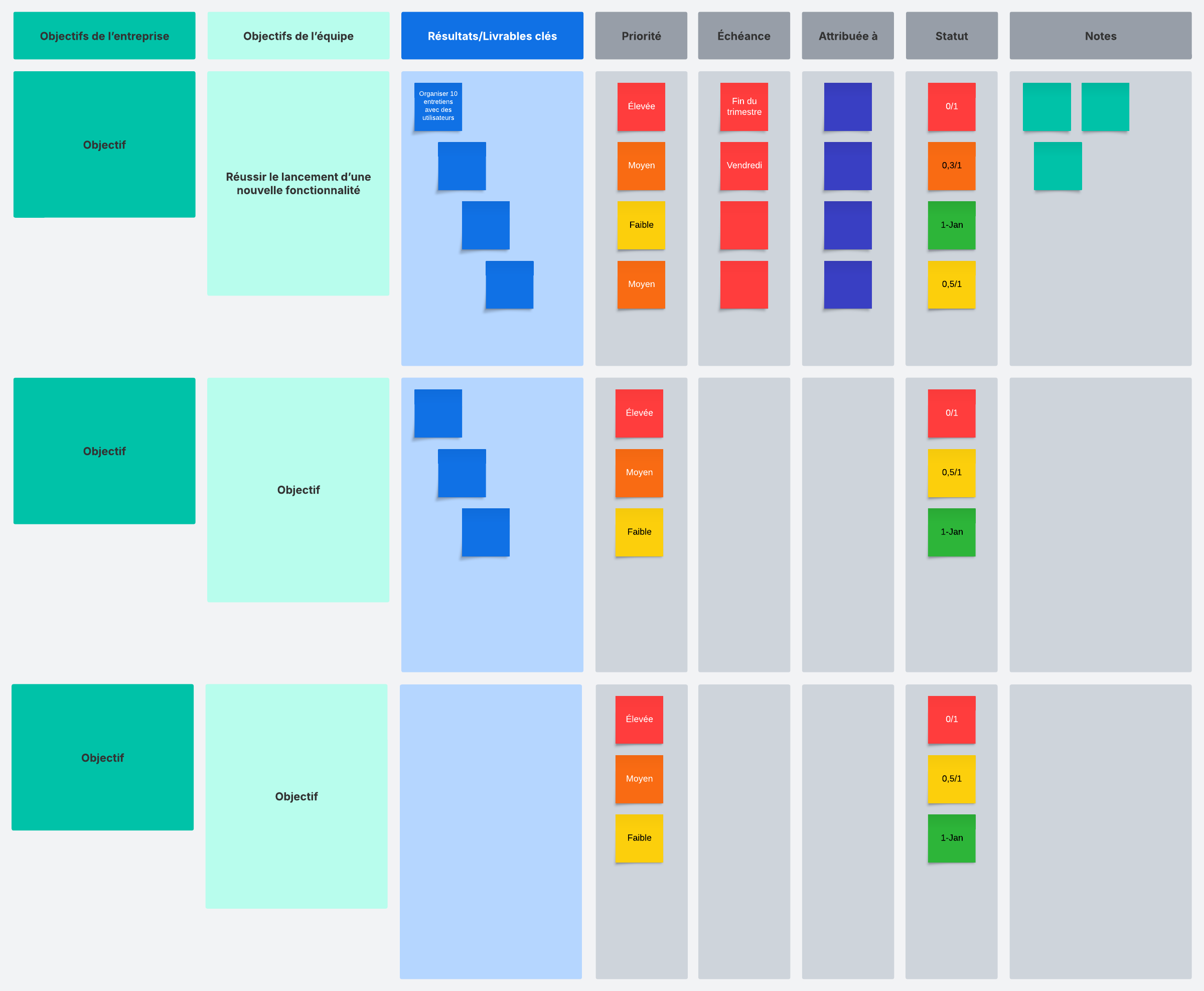 Tableau de planification des OKR