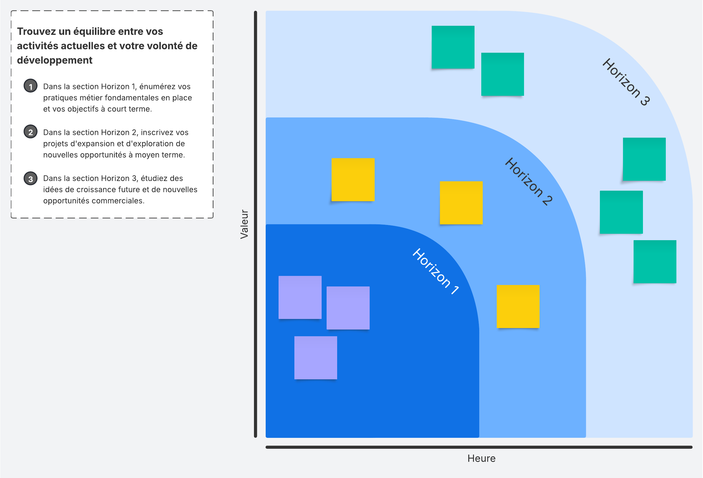 Trouvez un équilibre entre vos activités actuelles et votre croissance future en utilisant le modèle des trois horizons de croissance.