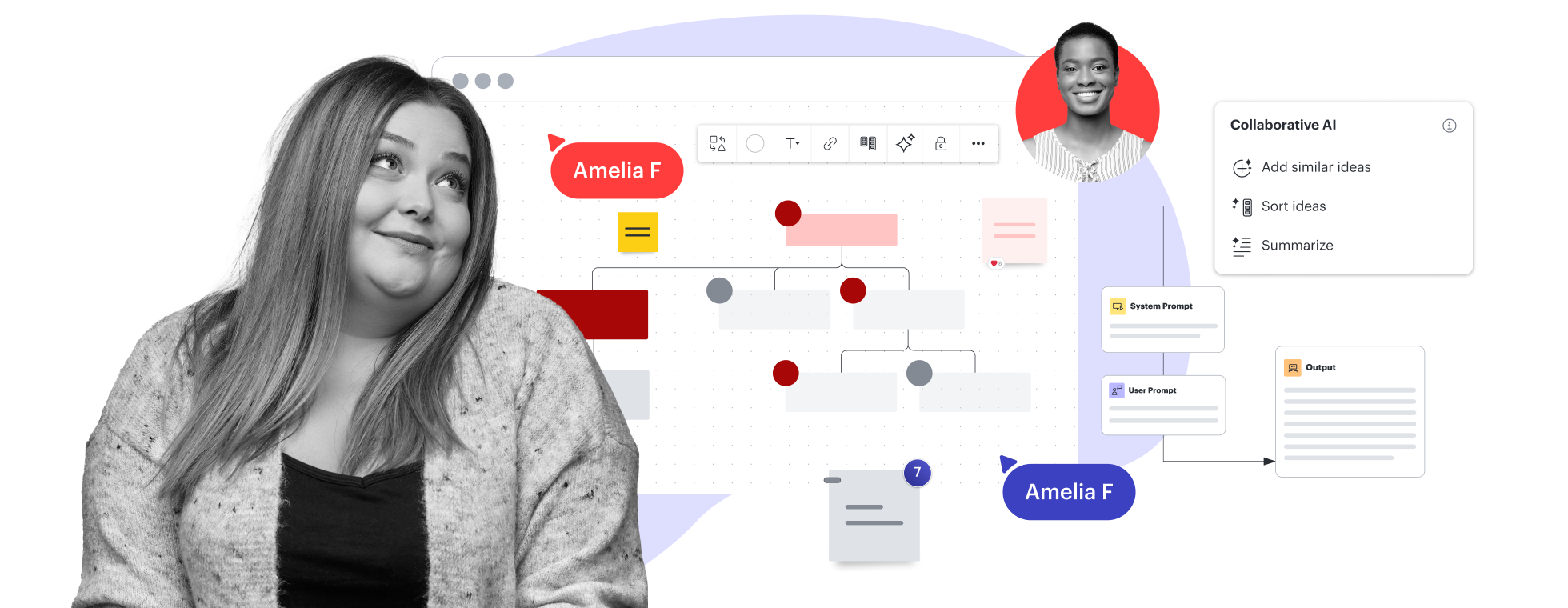 Non bloccarti prima ancora di iniziare. Usa Collaborative AI per dare il via alla tua sessione di brainstorming, esplorare nuove direzioni e riassumere conclusioni e azioni.