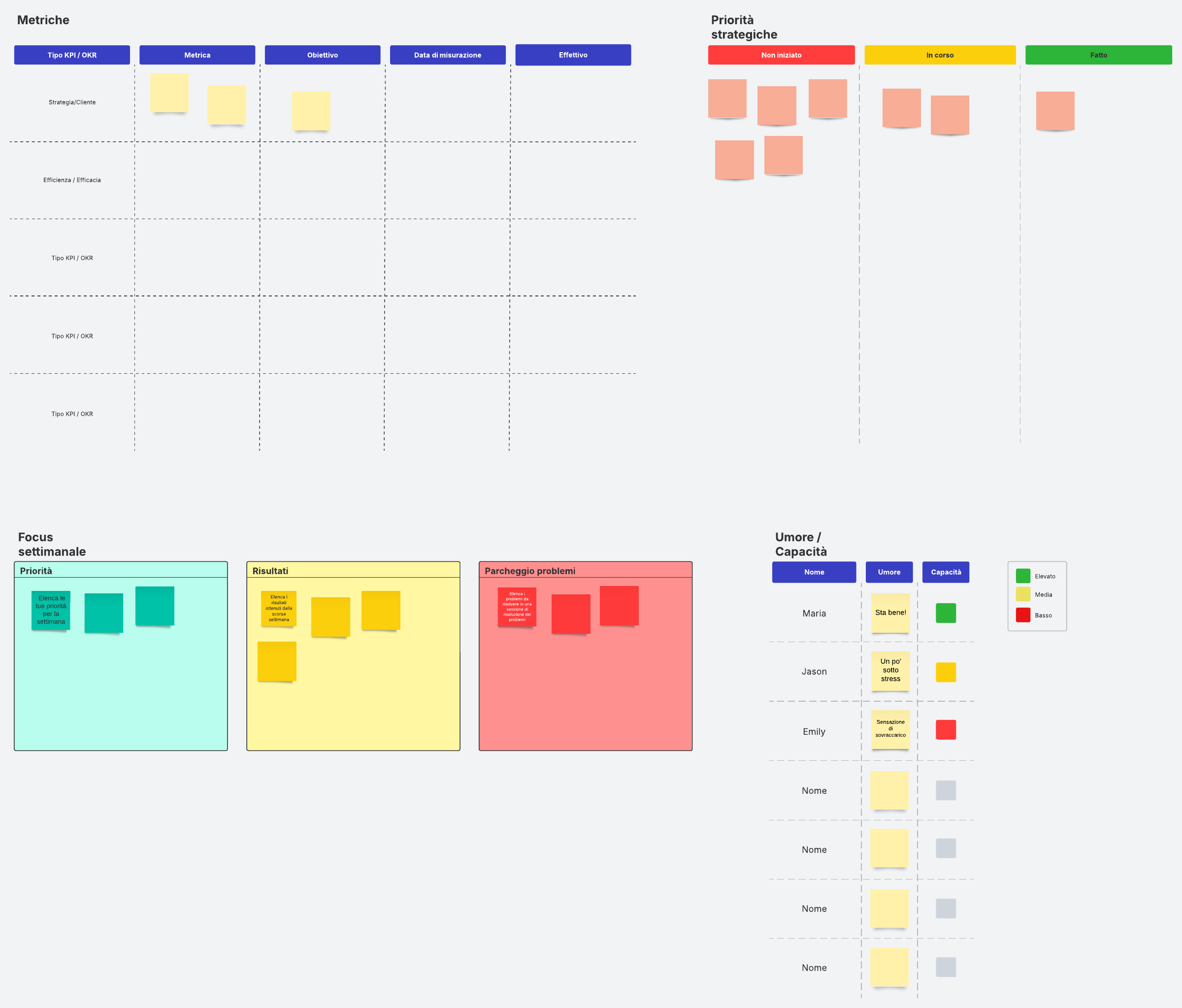 Usa una bacheca organizzativa per mostrare lo stato, i progressi e i problemi relativi alle iniziative di un team.