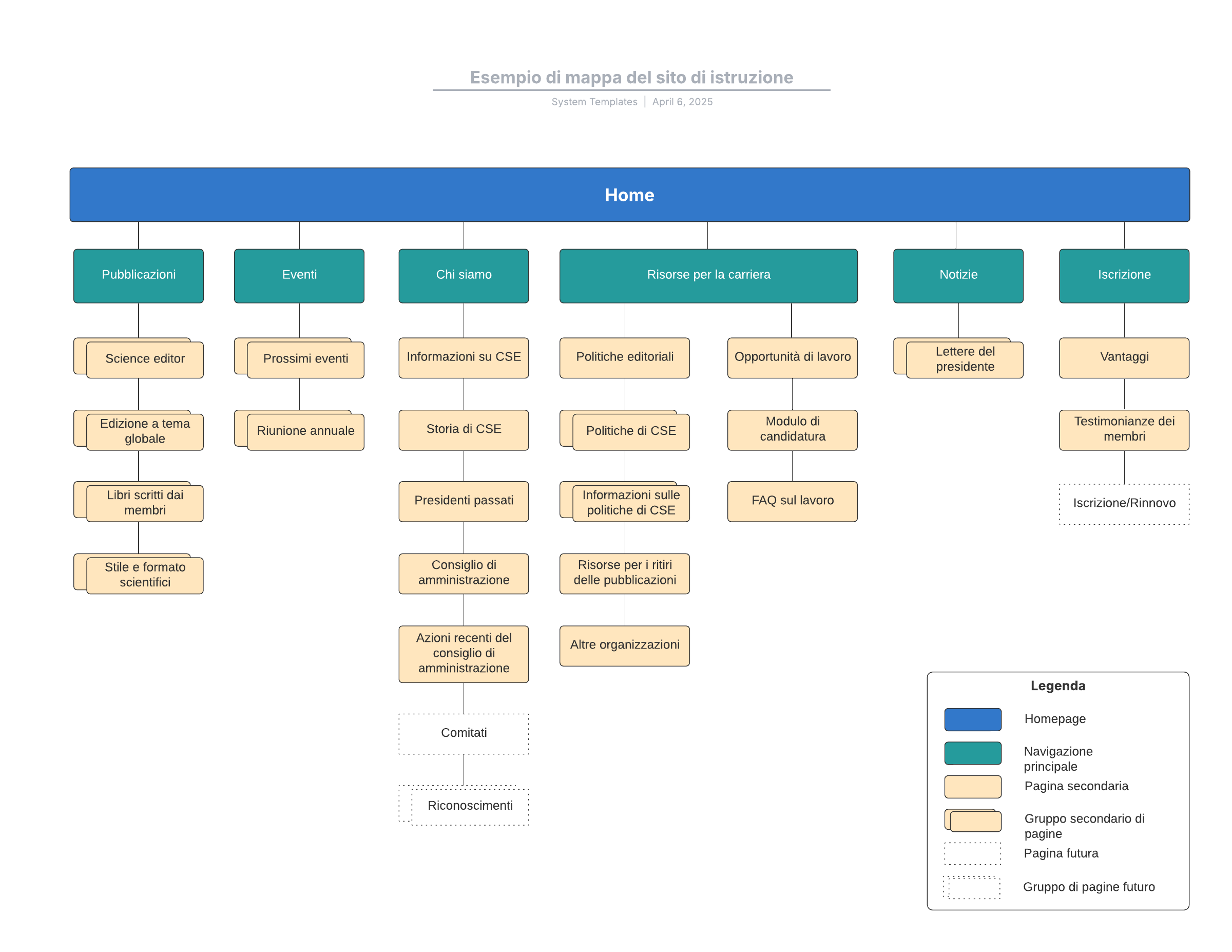 Apri questo modello per visualizzare l'esempio dettagliato di una mappa del sito di istruzione, che puoi personalizzare in base al tuo caso d'uso.