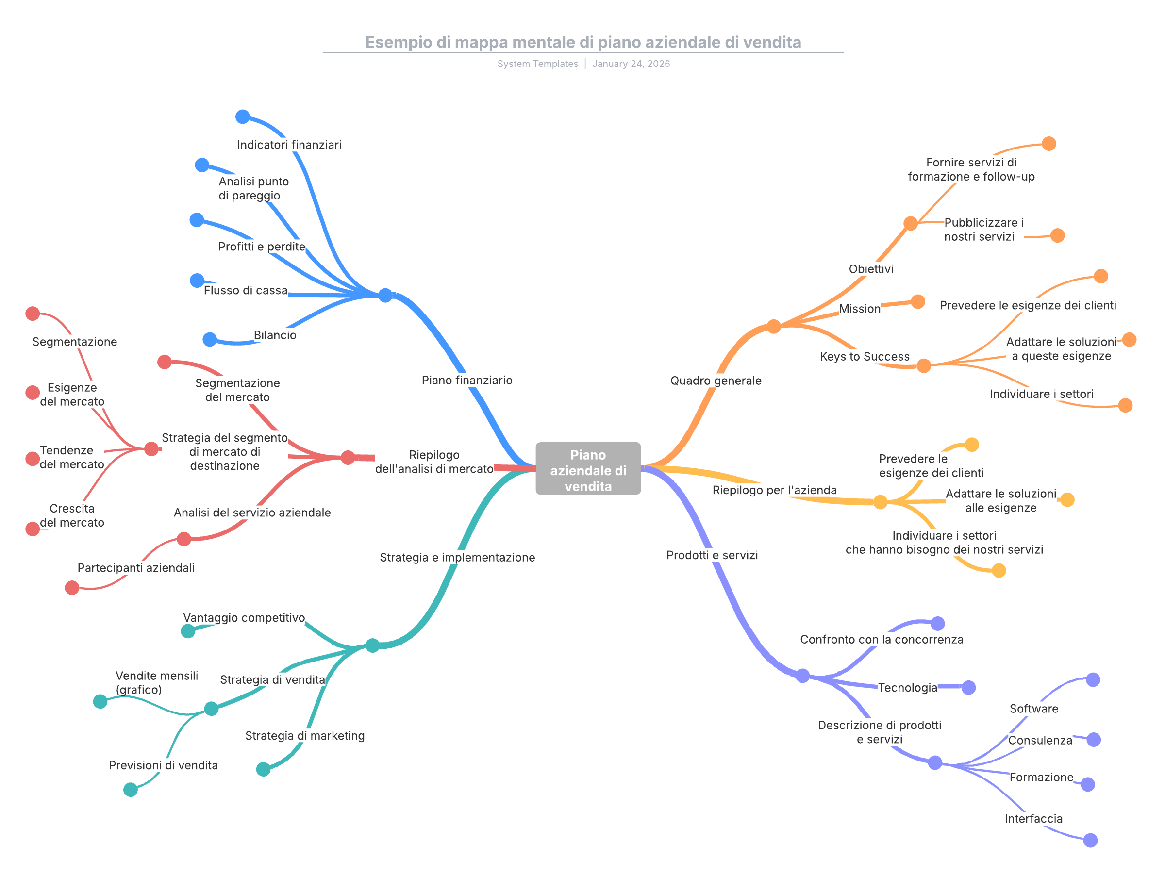 Esempio di mappa mentale di piano aziendale di vendita