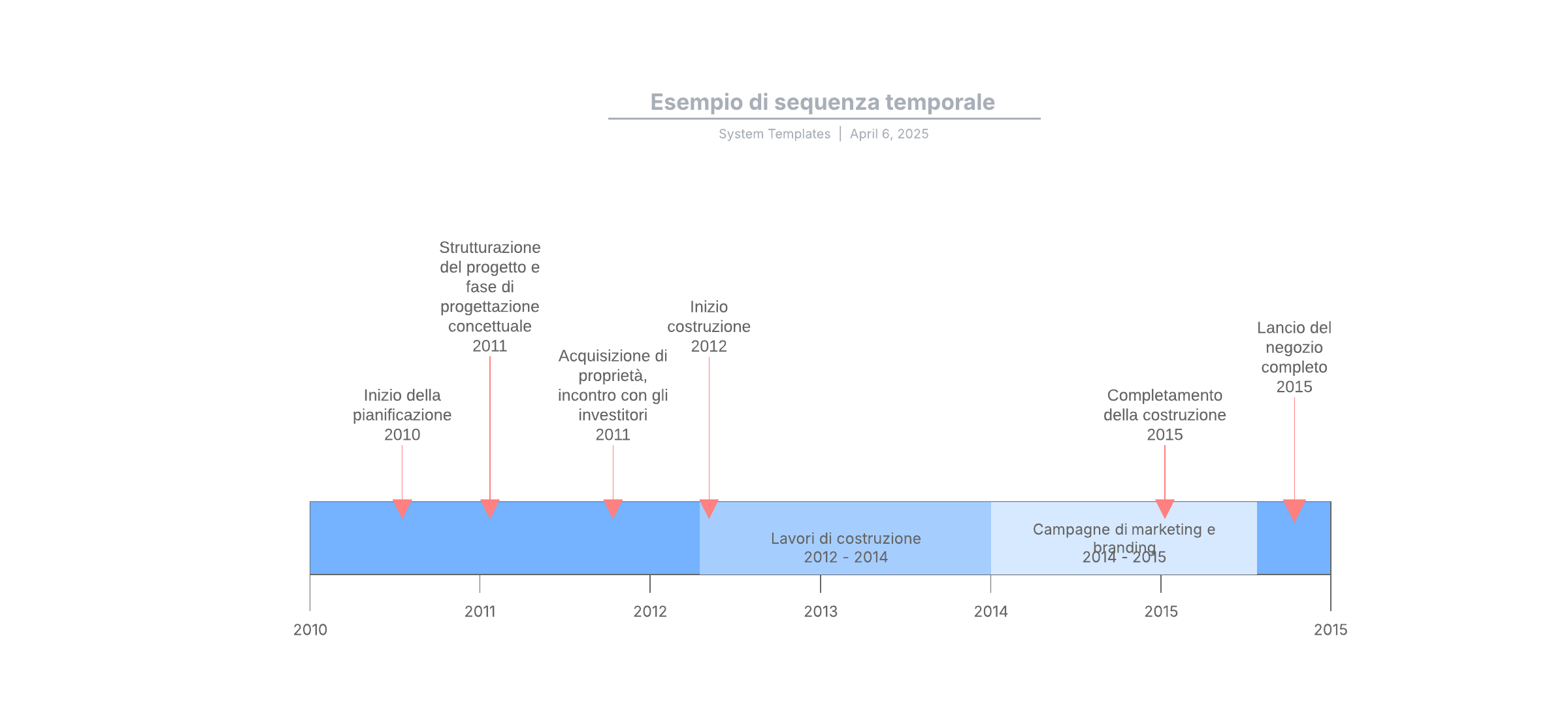 Apri questo modello per visualizzare un esempio dettagliato di un diagramma di sequenza temporale, che puoi personalizzare in base al tuo caso d'uso.