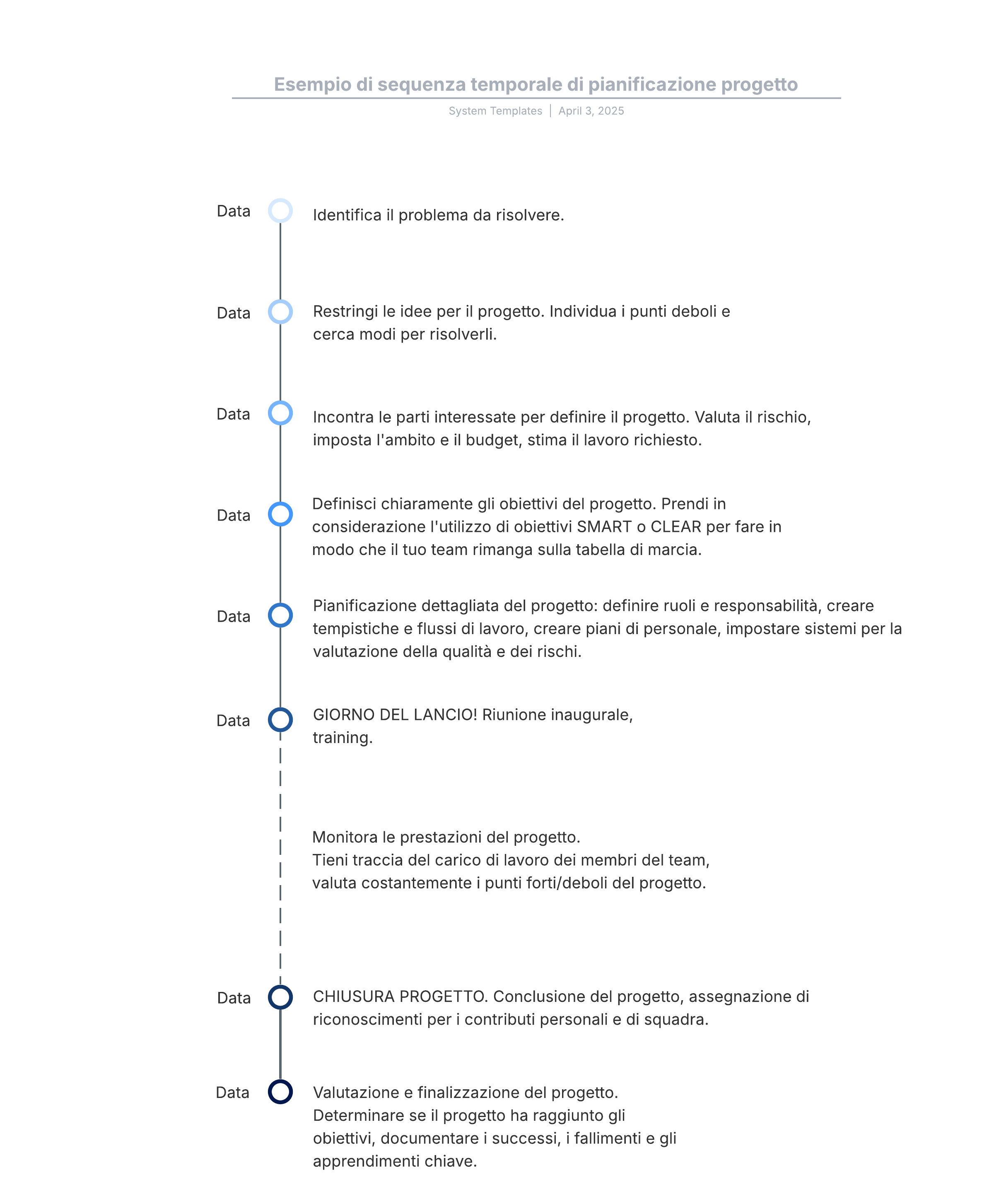 Questo esempio di sequenza temporale di pianificazione progetto può aiutarti a: